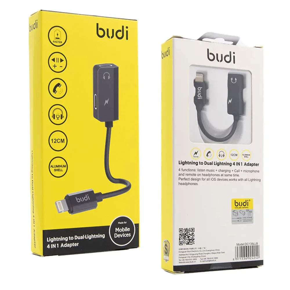 Переходник Budi Lightning на два порта Lightning предназначен для одновременного подключения наушников и зарядного устройства с разъемом Lightning. Этот адаптер позволяет слушать музыку через проводные наушники или использовать минигарнитуру во время зарядки. Компактный и легкий дизайн делает его удобным для повседневного использования.