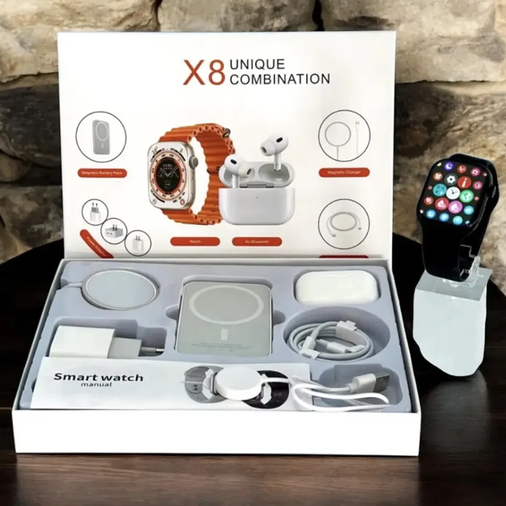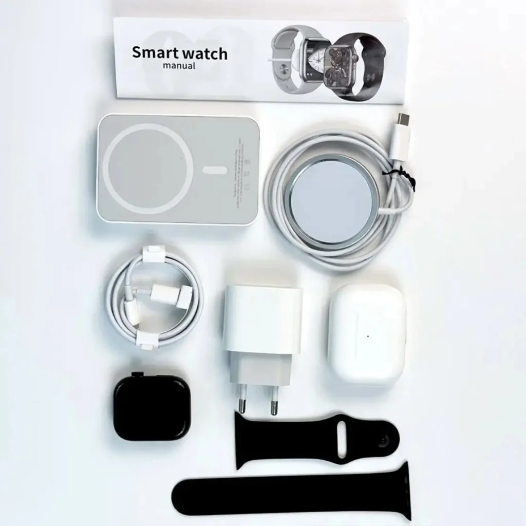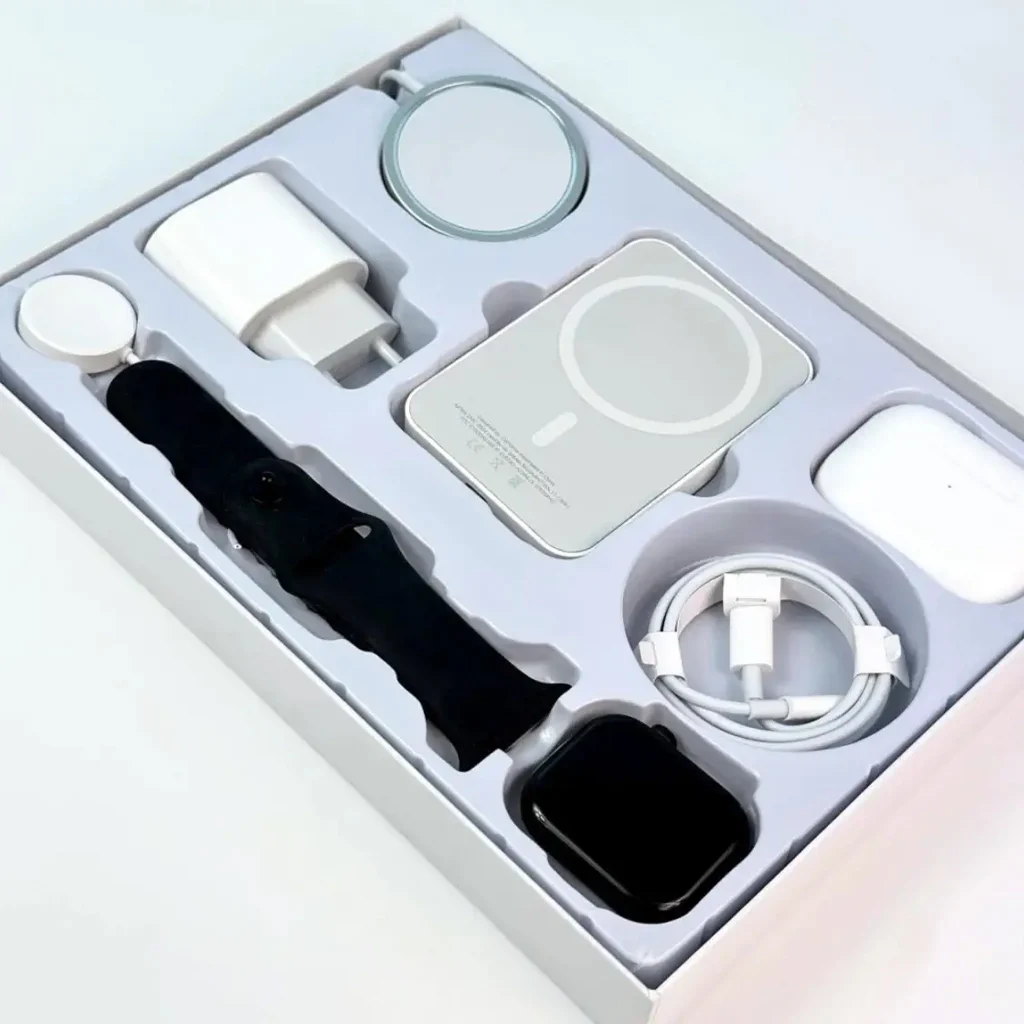 Умные часы, беспроводные наушники и зарядные устройства работают как единая система, предлагая стабильное подключение и простое управление. Комплект обеспечивает полный набор возможностей для активности, общения и работы в течение дня. Это практичное решение, которое подчёркивает стиль владельца и делает использование гаджетов максимально удобным в любых ситуациях.