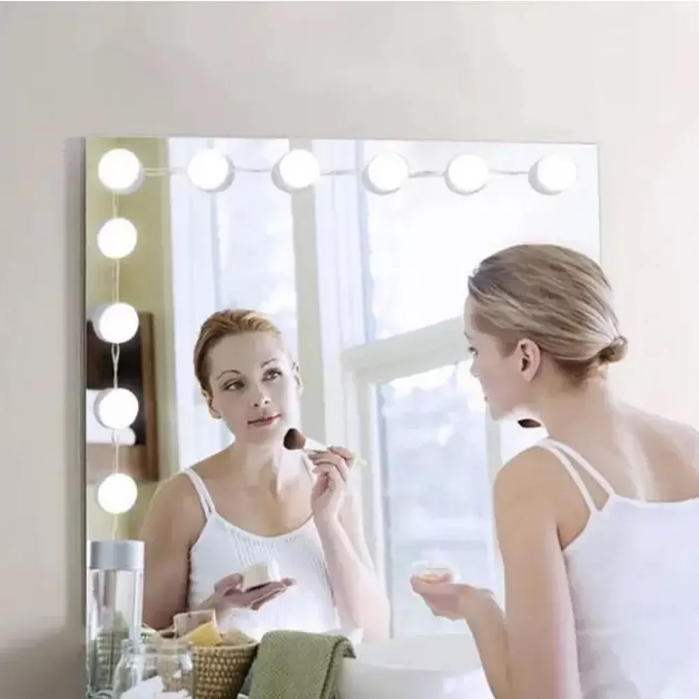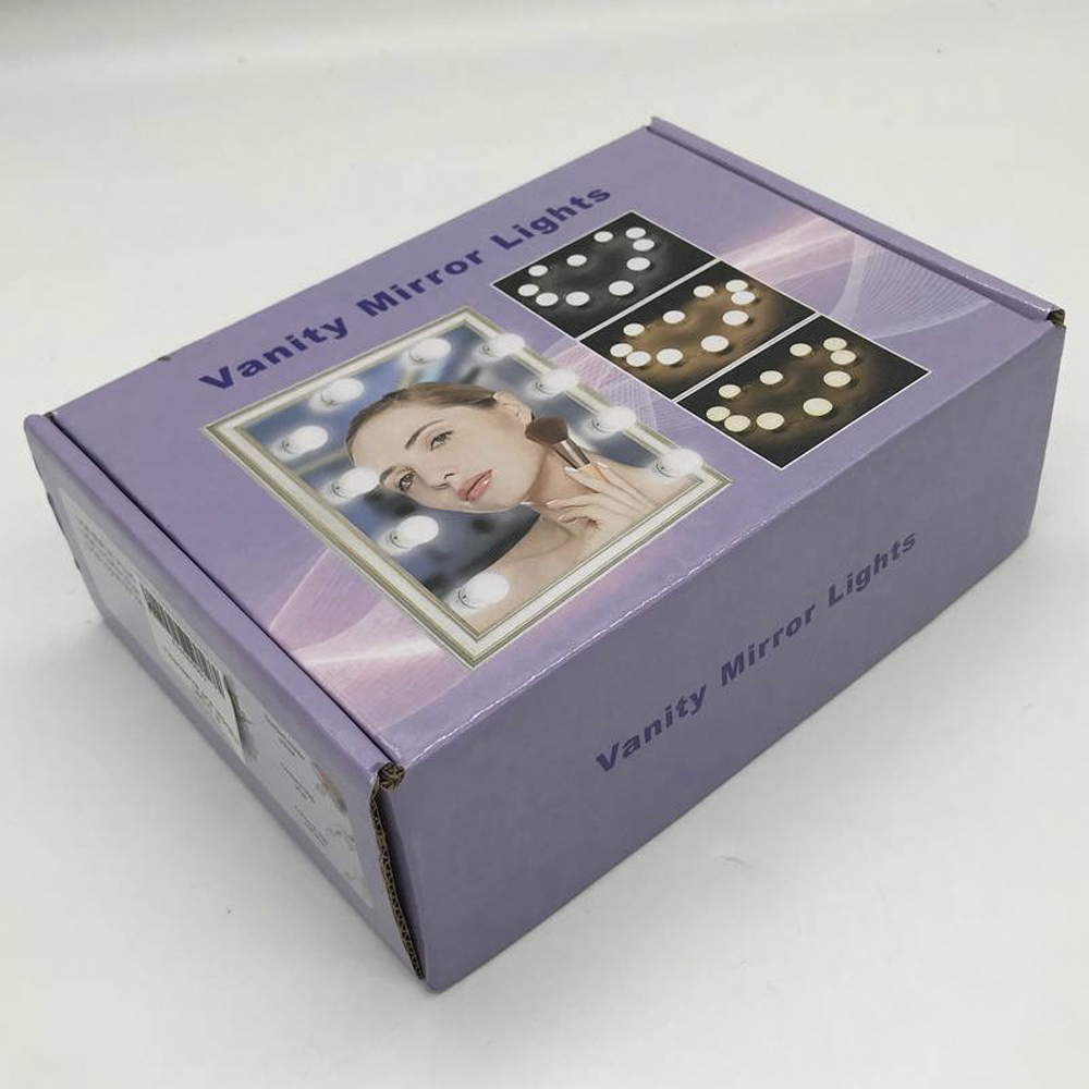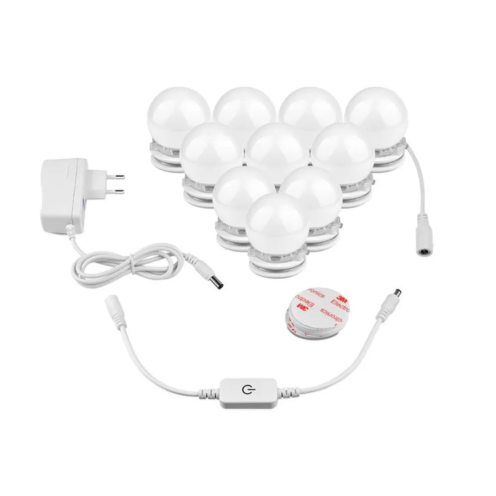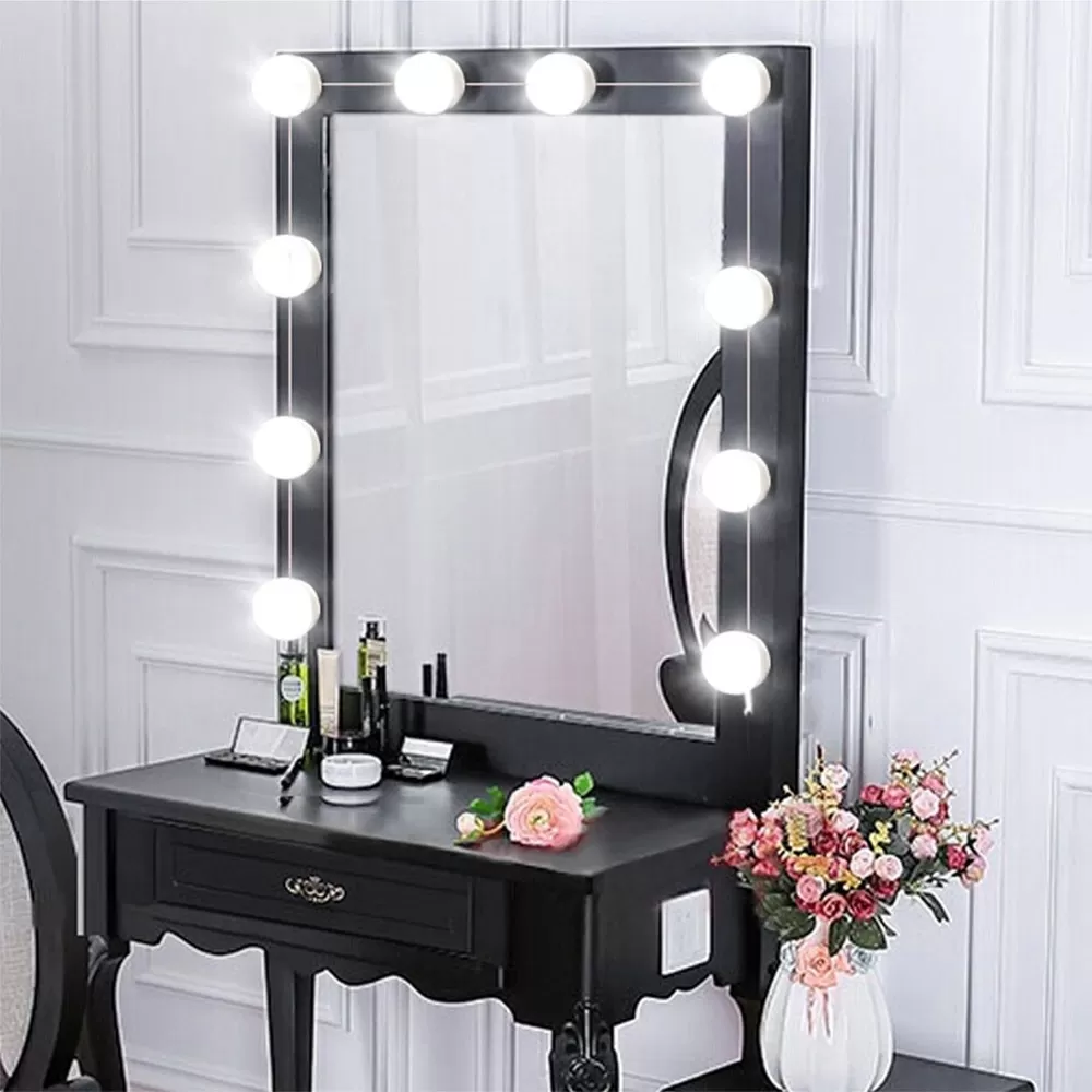 10 светодиодных лампочек в голливудском стиле с регулируемой яркостью света, обеспечивающих достаточную яркость для макияжа. Лампы от 6000K до 6500K рекомендуются профессиональными визажистами. Она мягкая и не ослепительная.