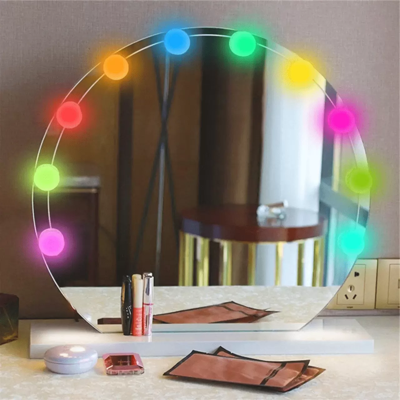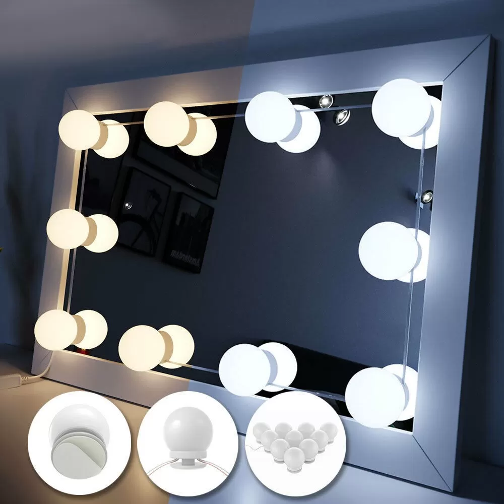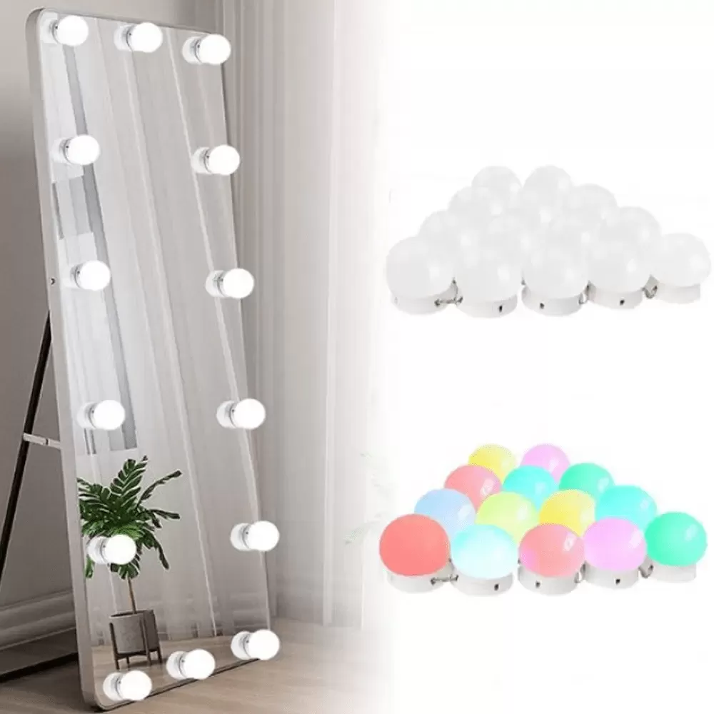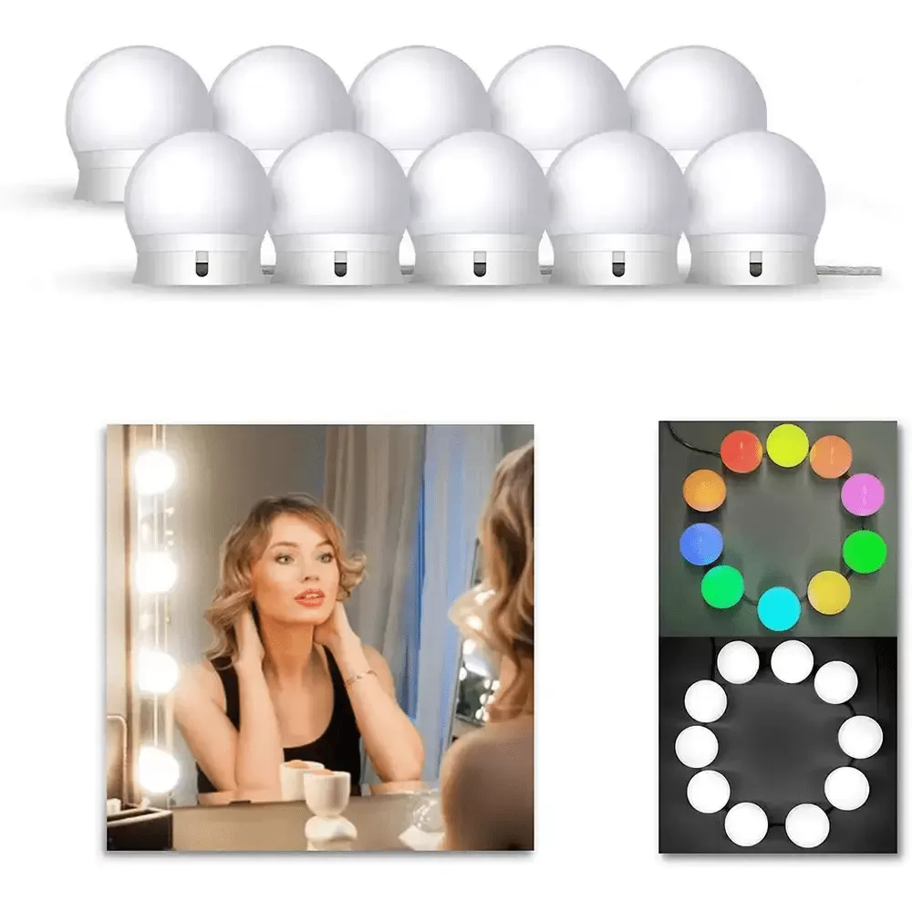 10 светодиодных лампочек в голливудском стиле с регулируемой яркостью света, обеспечивающих достаточную яркость для макияжа. Лампы от 6000K до 6500K рекомендуются профессиональными визажистами. Она мягкая и не ослепительная.