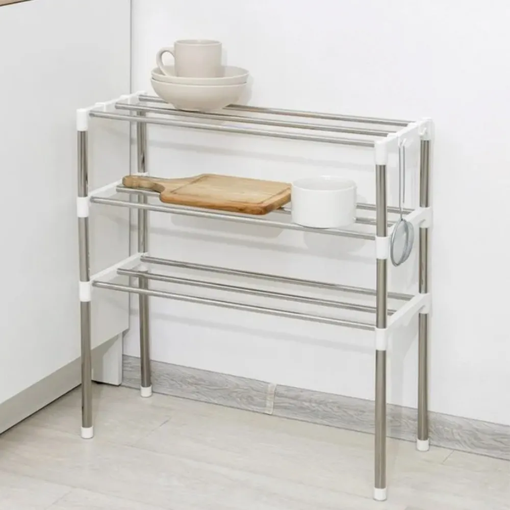 Благодаря своей прочной конструкции и нескольким уровням, она легко вмещает микроволновую печь, посуду, специи и другие необходимые предметы. Легкая в сборке и устойчивая, эта полка станет незаменимым помощником на вашей кухне, в ванной комнате или даже в офисе. Освободите место и наведите порядок с Multifunctional storage rack!