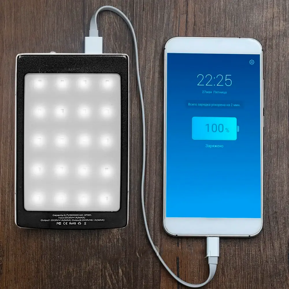 Этот портативный Power Bank с солнечной панелью и фонариком – незаменимый гаджет для активных людей. Он обеспечит вас энергией в любой ситуации, будь то поход, путешествие или просто долгий день вне дома. Высокоемкостный аккумулятор 20000 мАч позволяет многократно зарядить смартфон, планшет или другие устройства.