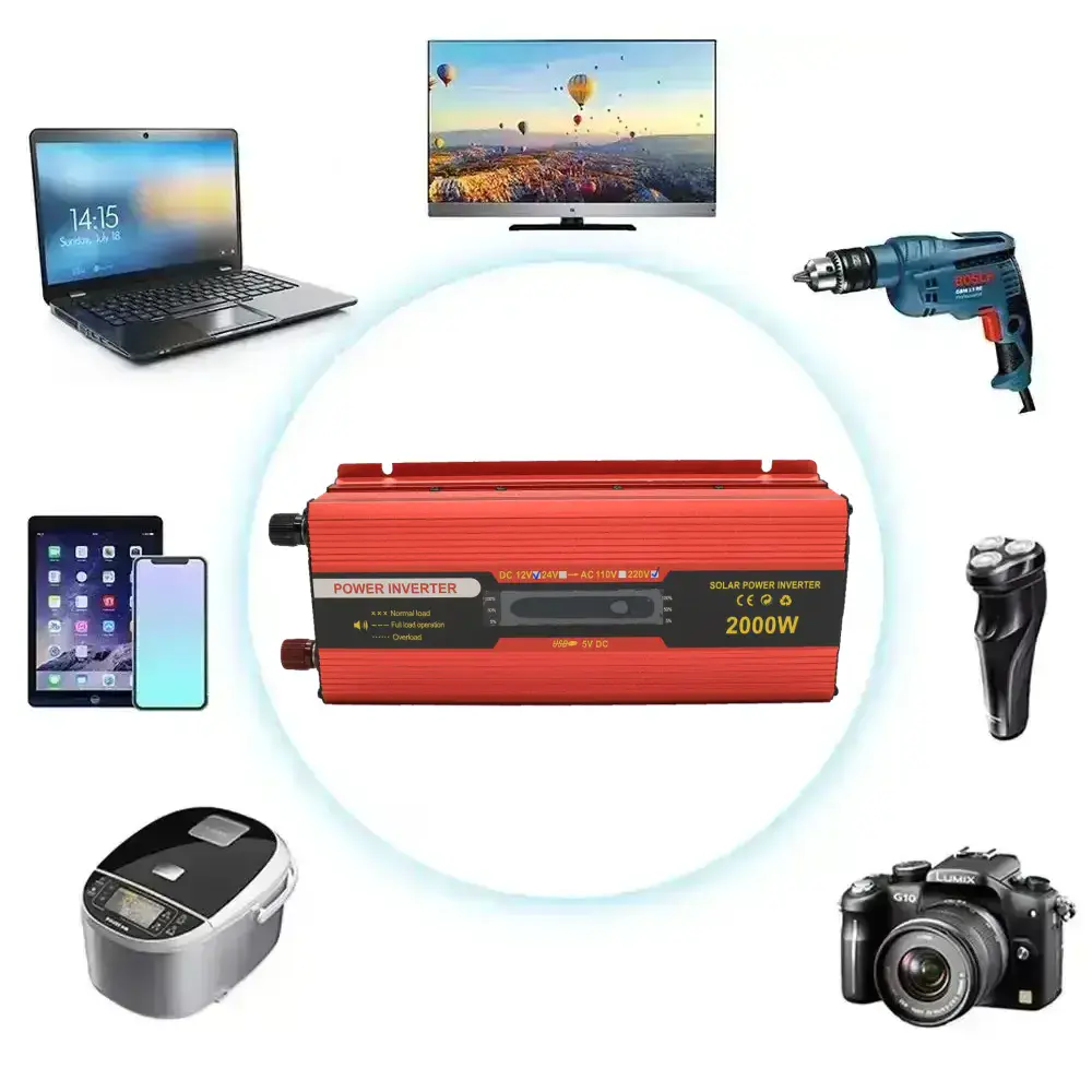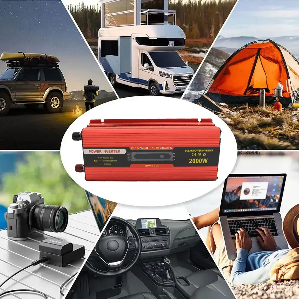 Инвертор преобразует 12 В постоянного тока в 220 В переменного, что делает его отличным выбором для использования в пути. Он способен поддерживать работу большинства бытовых приборов, таких как ноутбуки, телевизоры, зарядные устройства для инструментов и даже небольшая бытовая техника, что делает его универсальным решением для путешествий, кемпинга или в случае аварийных отключений электроэнергии.