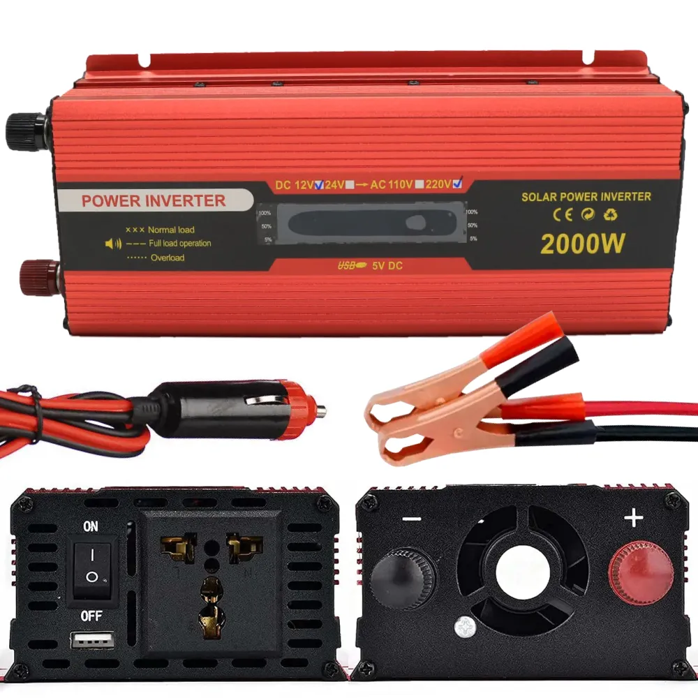 Преобразователь напряжения 12В-220В, 2000Вт + Клеммы / Автомобильный инвертор напряжения AC/DC / Автоинвертор