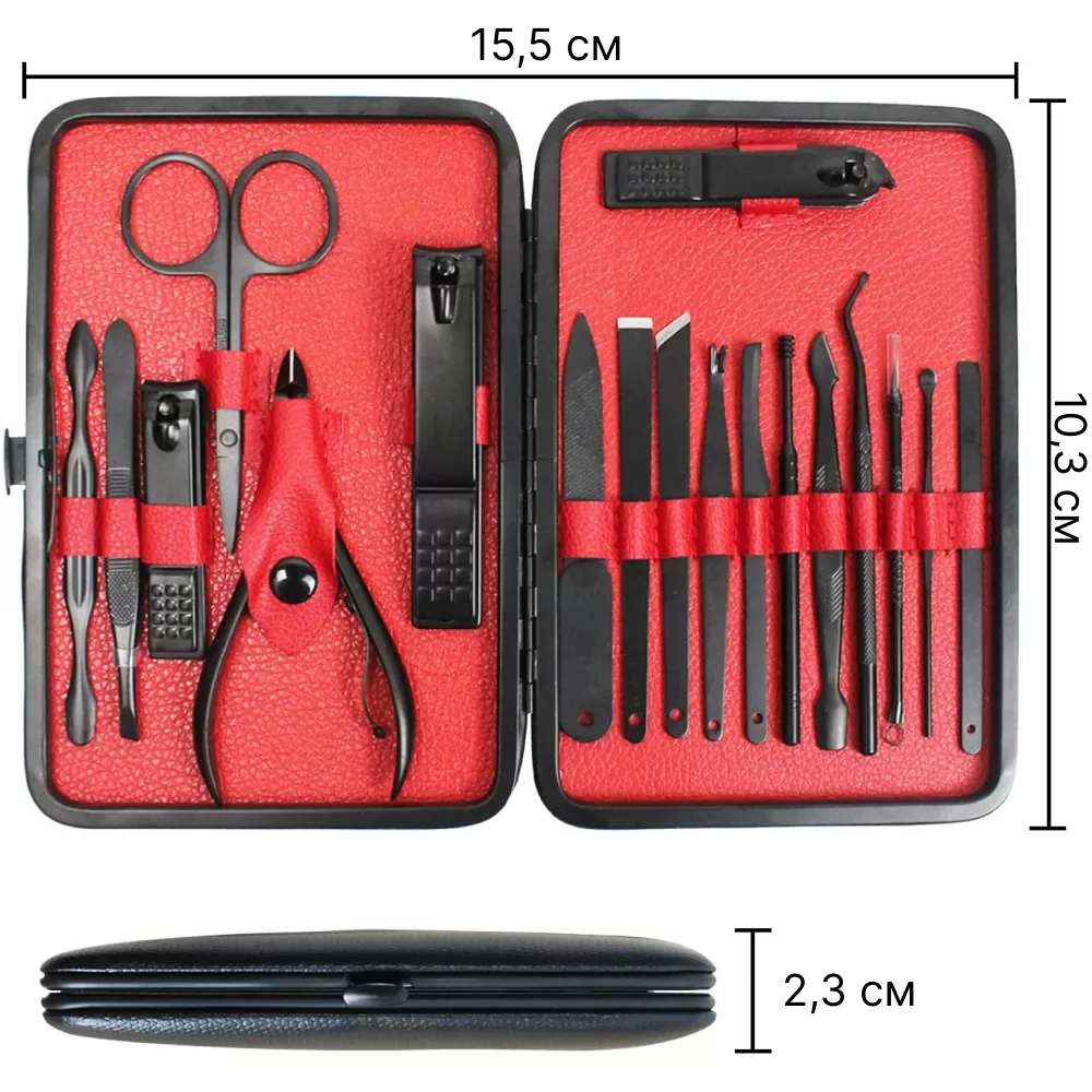 Профессиональный маникюрный набор из 18 инструментов в кейсе – это исключительный комплект инструментов, созданный для обеспечения высококачественного ухода за ногтями и кожей рук. Этот набор предоставляет всё необходимое для создания аккуратного и элегантного маникюра прямо в уютном домашнем окружении.