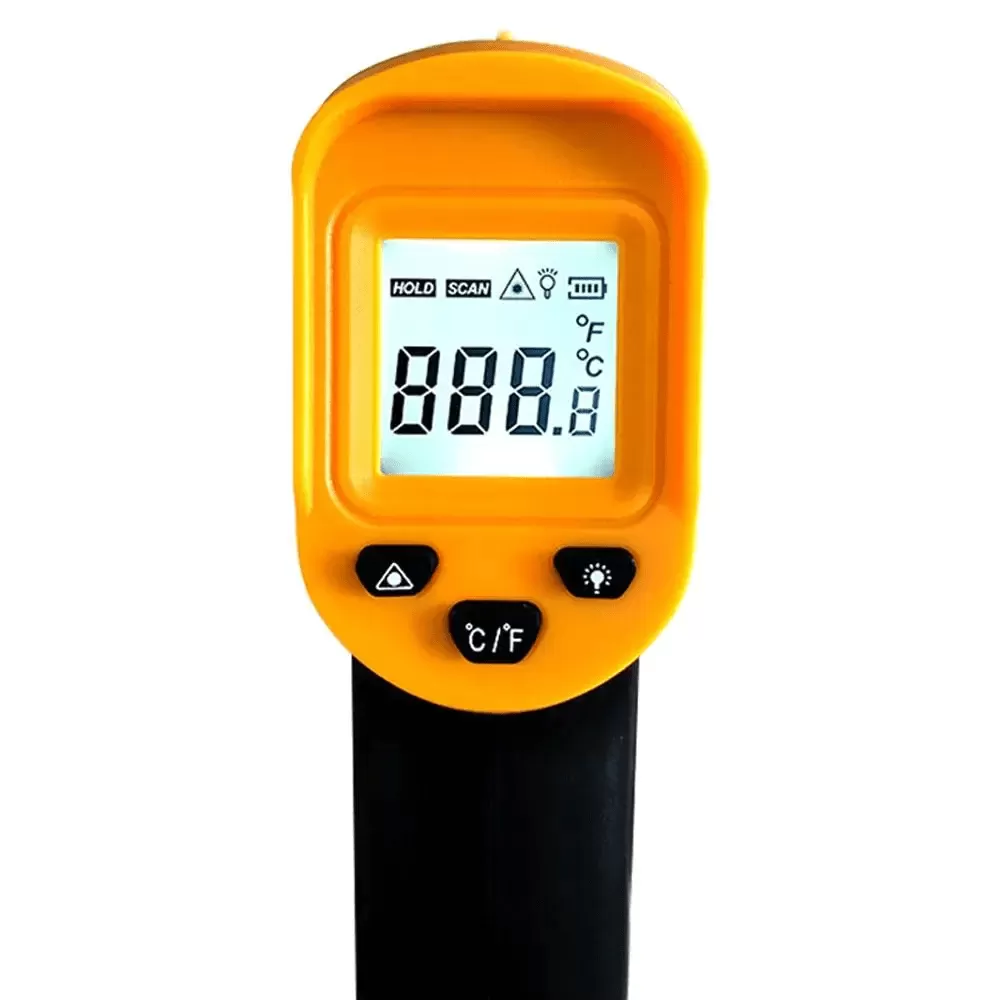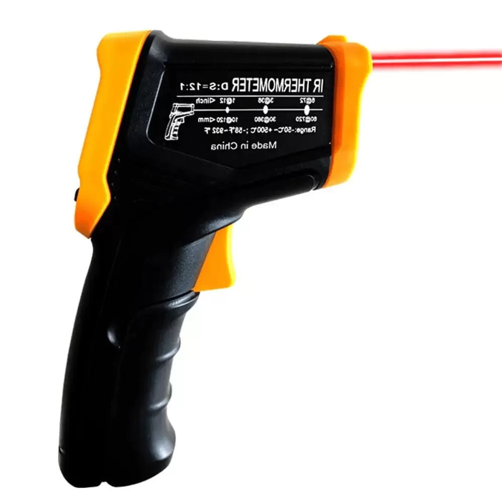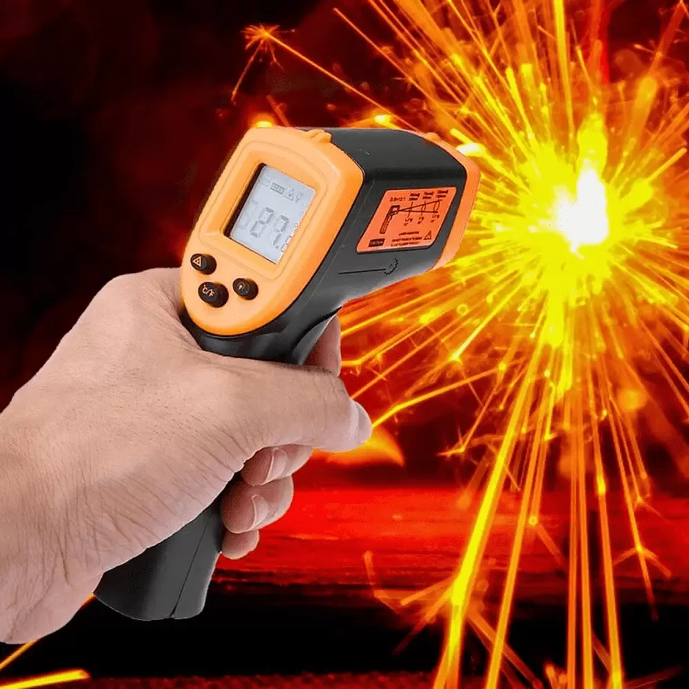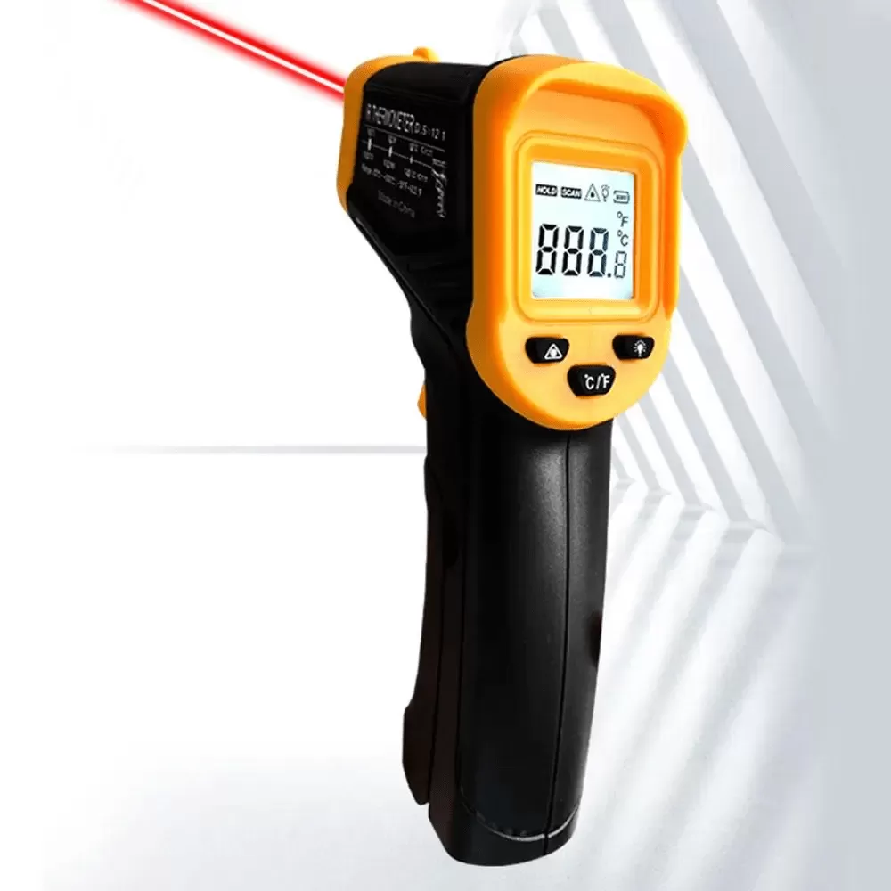 Термометр электронный модель GM380 предназначен для быстрого и безопасного измерения температуры поверхностей в диапазоне от -50ºC до 380 ºC. Он предназначен для измерения температуры поверхности горячих, труднодоступных, опасных объектов без контакта с ними. Вы просто нажимаете кнопку измерить, прицеливаетесь на измеряемую точку встроенным лазерным указателем и практически мгновенно читаете на дисплеи измеренную температуру.