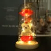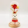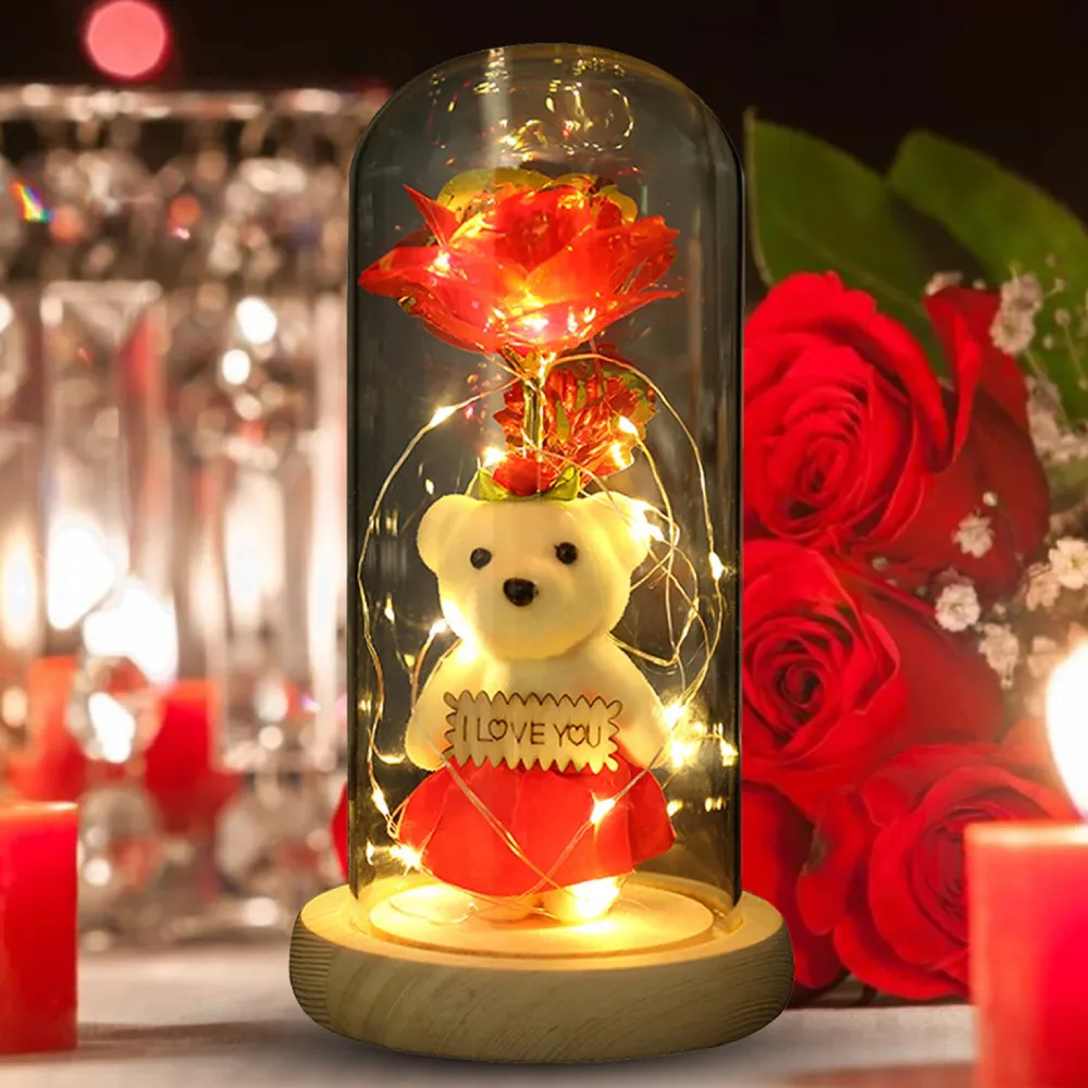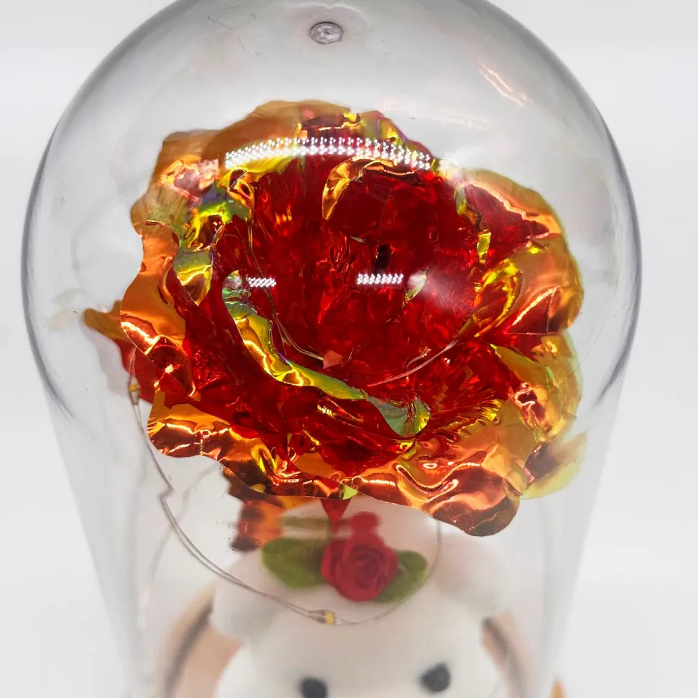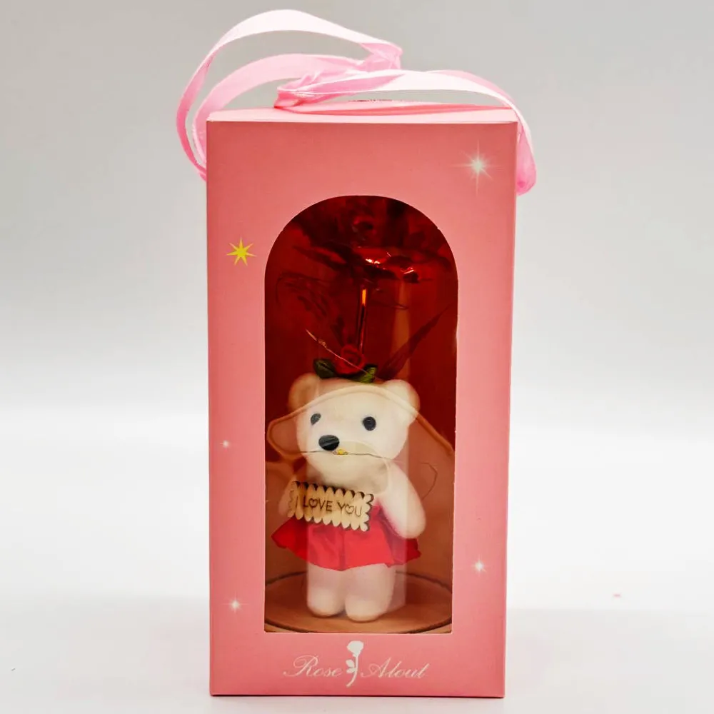 Роза в колбе с мишкой и подсветкой 21см, на батарейках A-7 / Ночник вечная роза под куполом / Подарочная роза