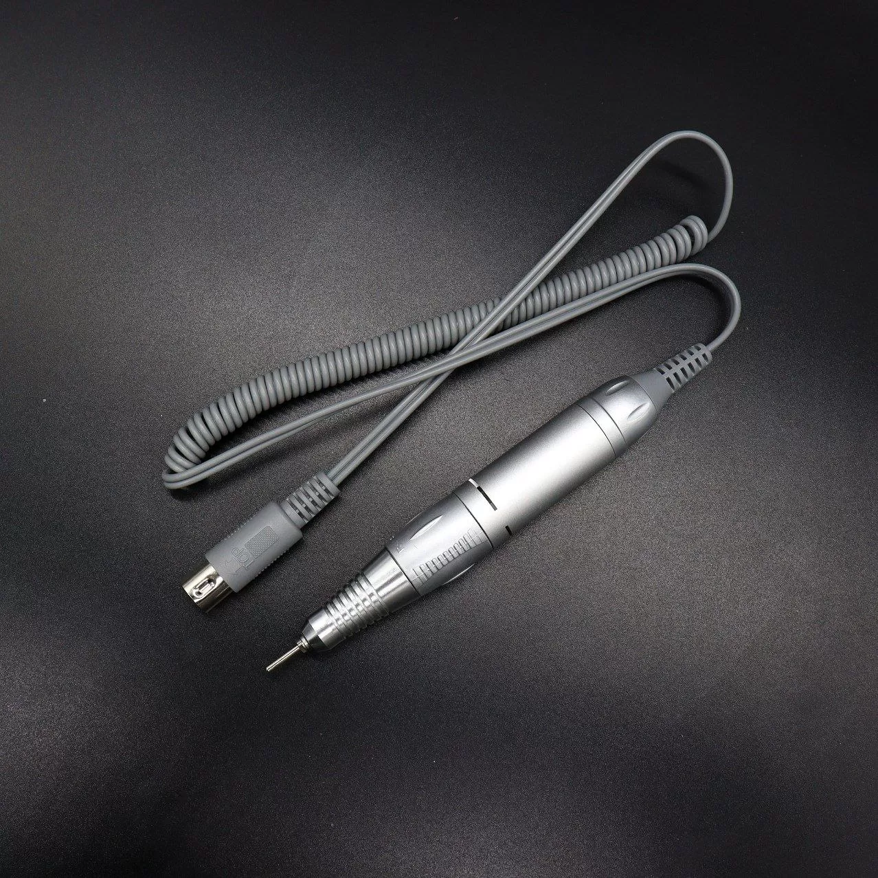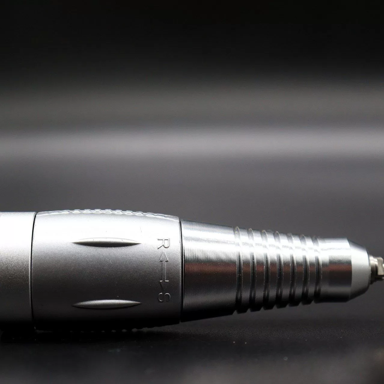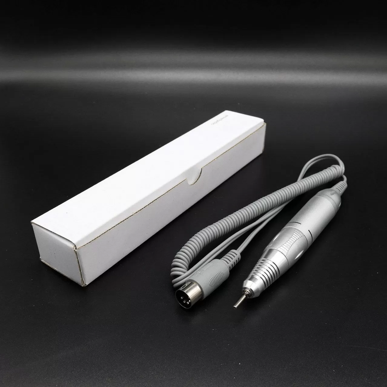 Ручка достаточной легкая, и удобно лежит в руке. Она также защищена от перегрева за счет функции обдувки, что гарантирует продолжительность работы. Тип зажима Twist-Lock плотно удерживает насадку и фиксирует фрезу одним поворотом рукоятки, что не вызывает вибрации и очень удобно при частой смене фрез.