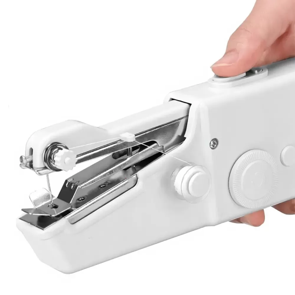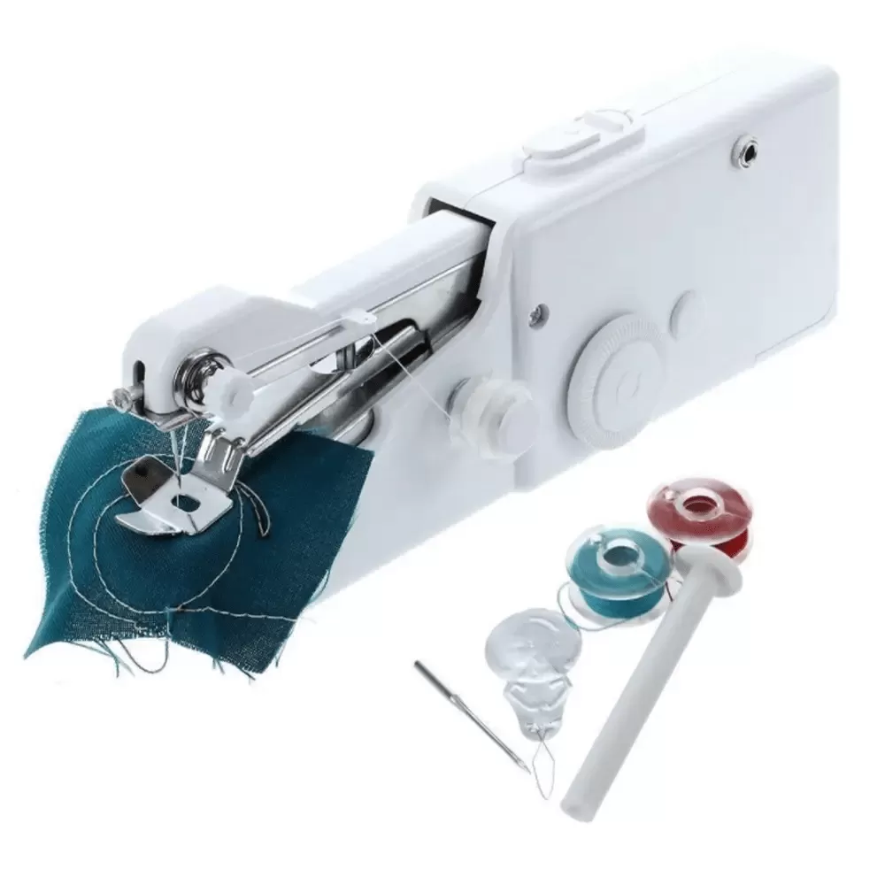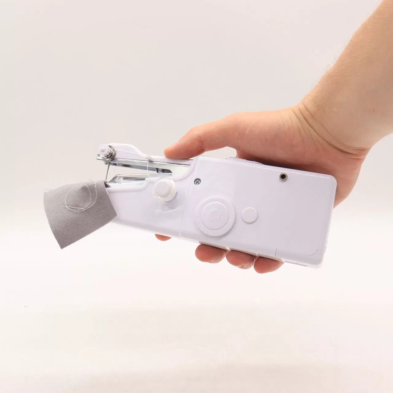 Мини швейная машинка ручная Handy Stitch. Работает устройство от 4ых пальчиковых батареек, потому вы сможете расположиться в уютном кресле и шить, а не терзать себя в учениях за неудобным агрегатом. Вы просто берете машинку в руку, нажимаете на кнопку и шьете.