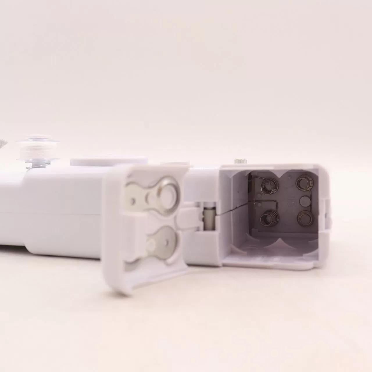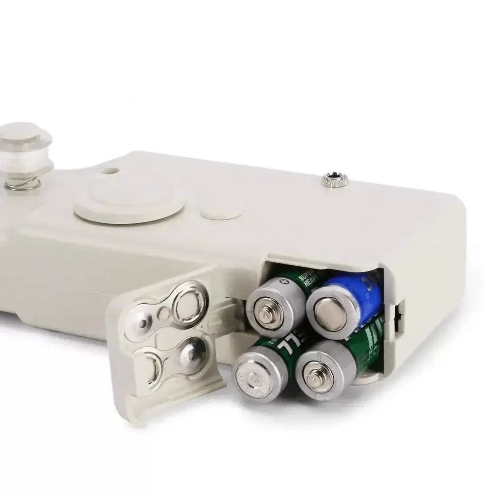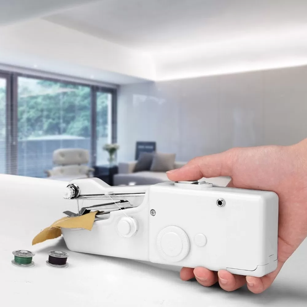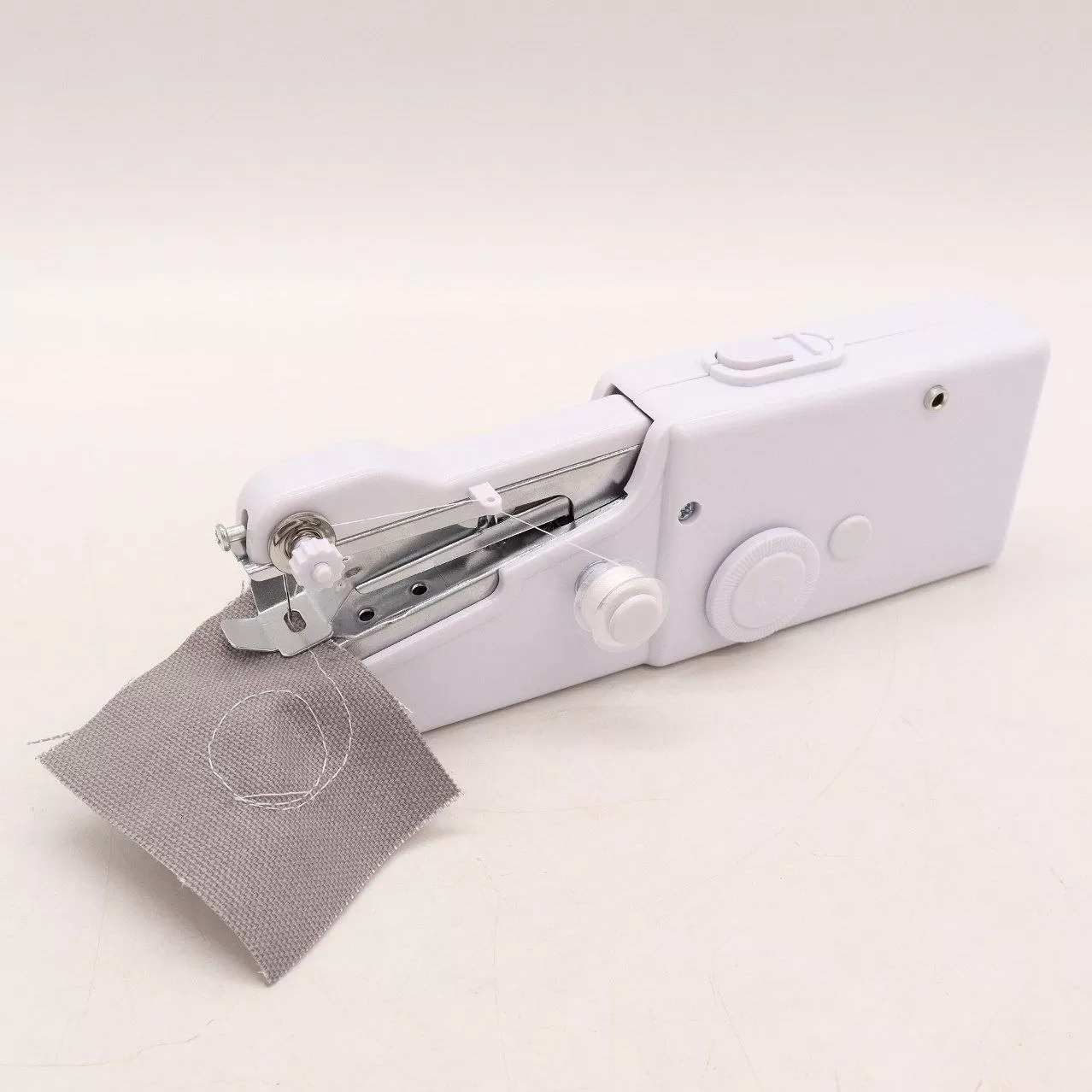 Мини швейная машинка ручная Handy Stitch. Работает устройство от 4ых пальчиковых батареек, потому вы сможете расположиться в уютном кресле и шить, а не терзать себя в учениях за неудобным агрегатом. Вы просто берете машинку в руку, нажимаете на кнопку и шьете.