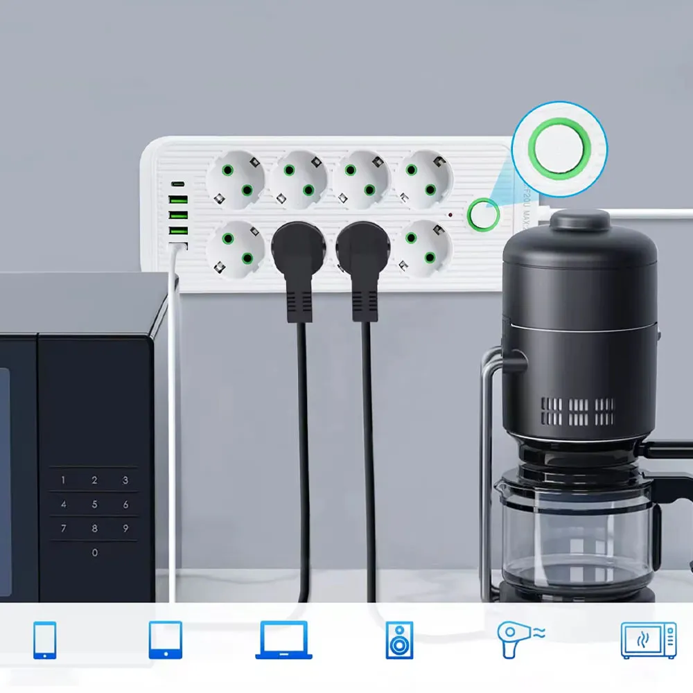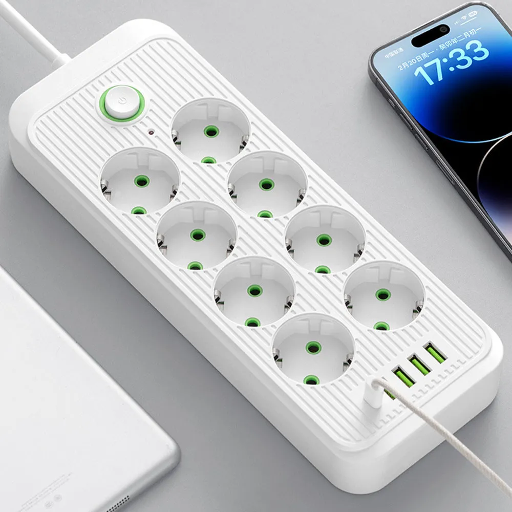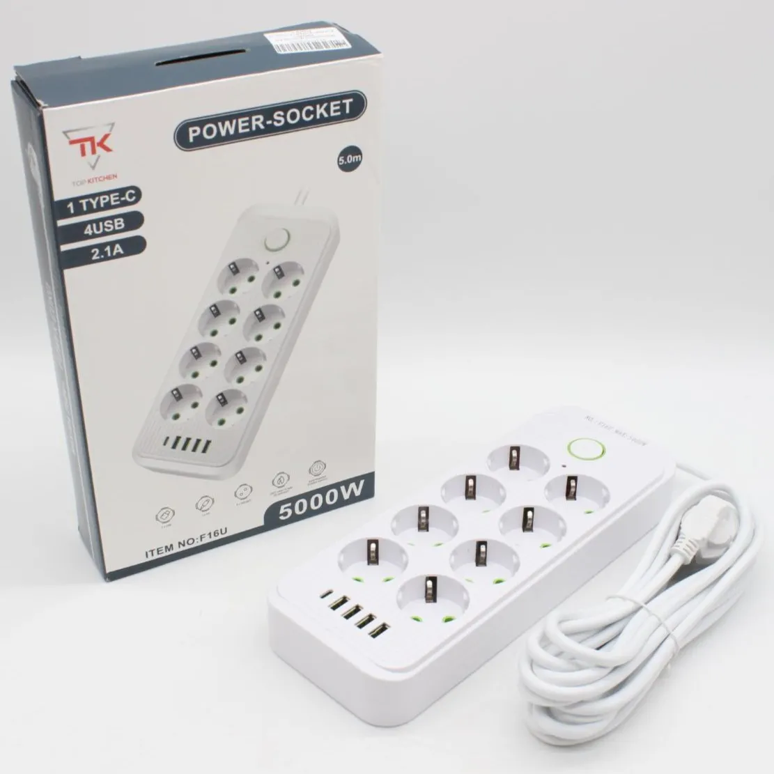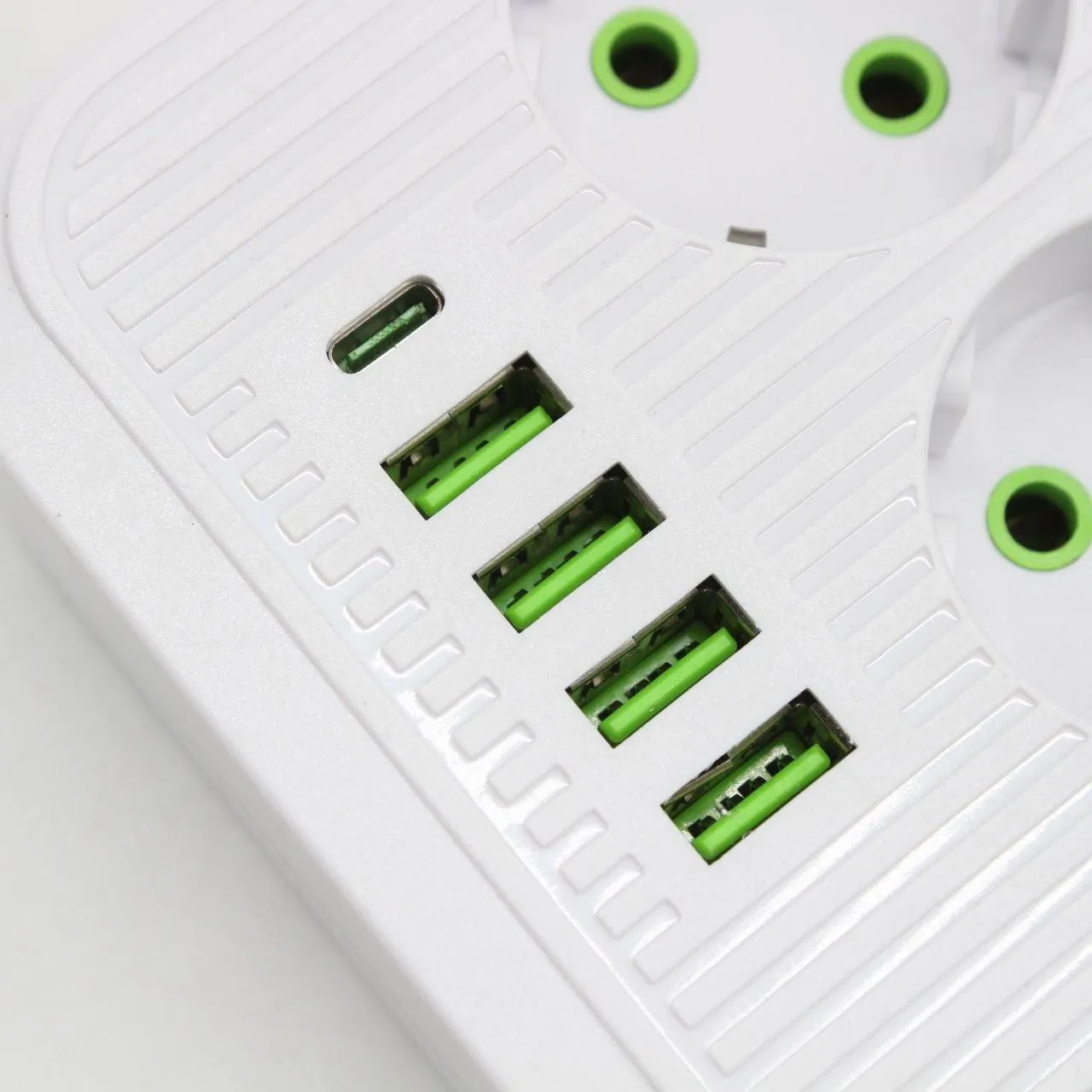Сетевой удлинитель с розетками – это универсальное решение для подключения и защиты вашей бытовой техники. Он оснащен тремя стандартными розетками 220 В, идеально подходящими для подключения различных устройств и электроники. Четыре порта USB и разъем Type-C обеспечивают быструю и безопасную зарядку ваших гаджетов, таких как смартфоны, планшеты и беспроводные наушники.