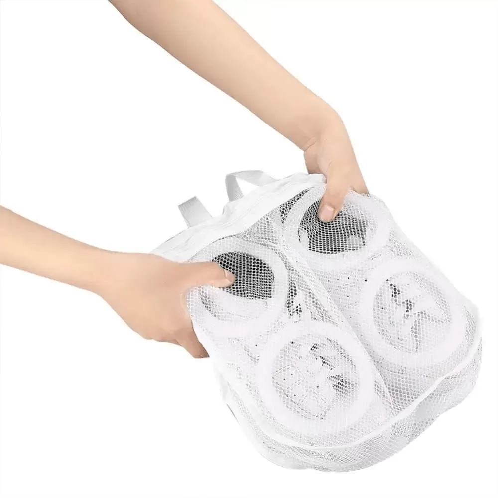 Такой мешочек поможет сберечь не только обувь, но также любимую стиральную машину. Чехол имеет защитные вставки поролона. Закрывается он молнией. Стирать в таком чехле действительно удобно. Также присутствует ручки для сушки.