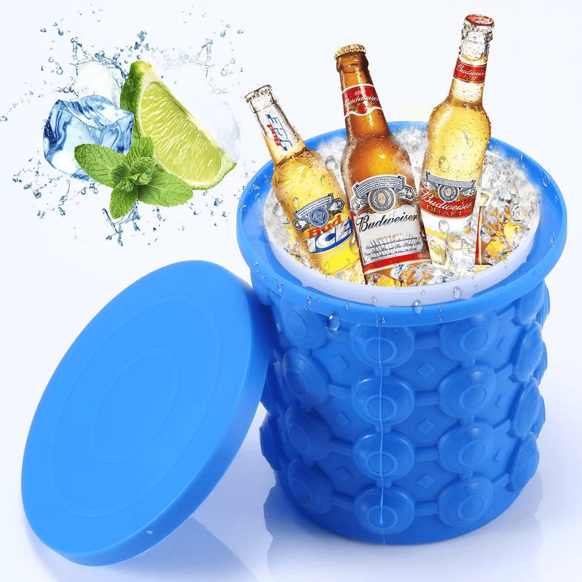 Силиконовое ведро для льда Ice Cube Maker Genie может использоваться для охлаждения напитков в бутылках. Особенности:Быстрое охлаждение бутилированных напитков. Идеальный круг намного меньше площади поверхности обычного льдогенератора.