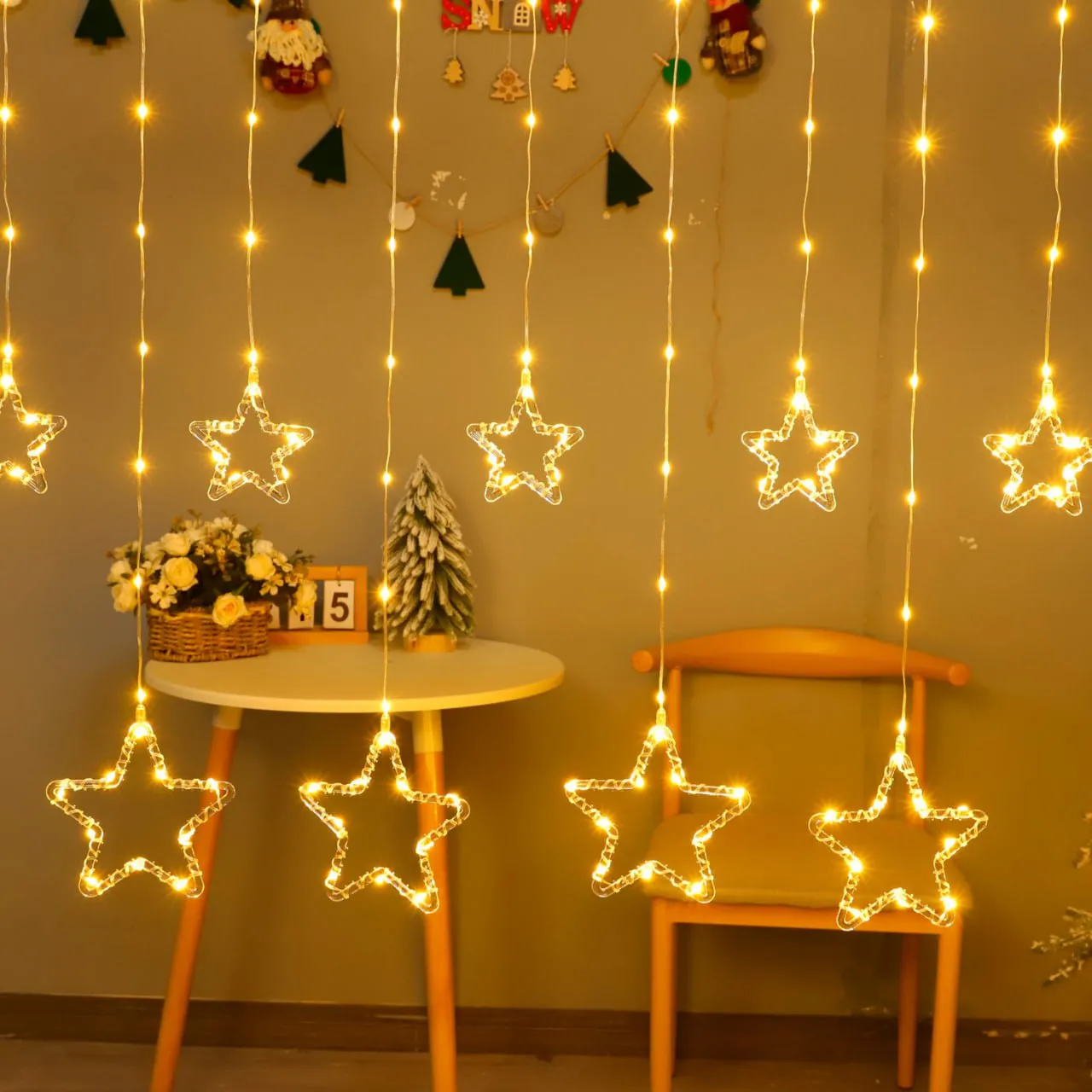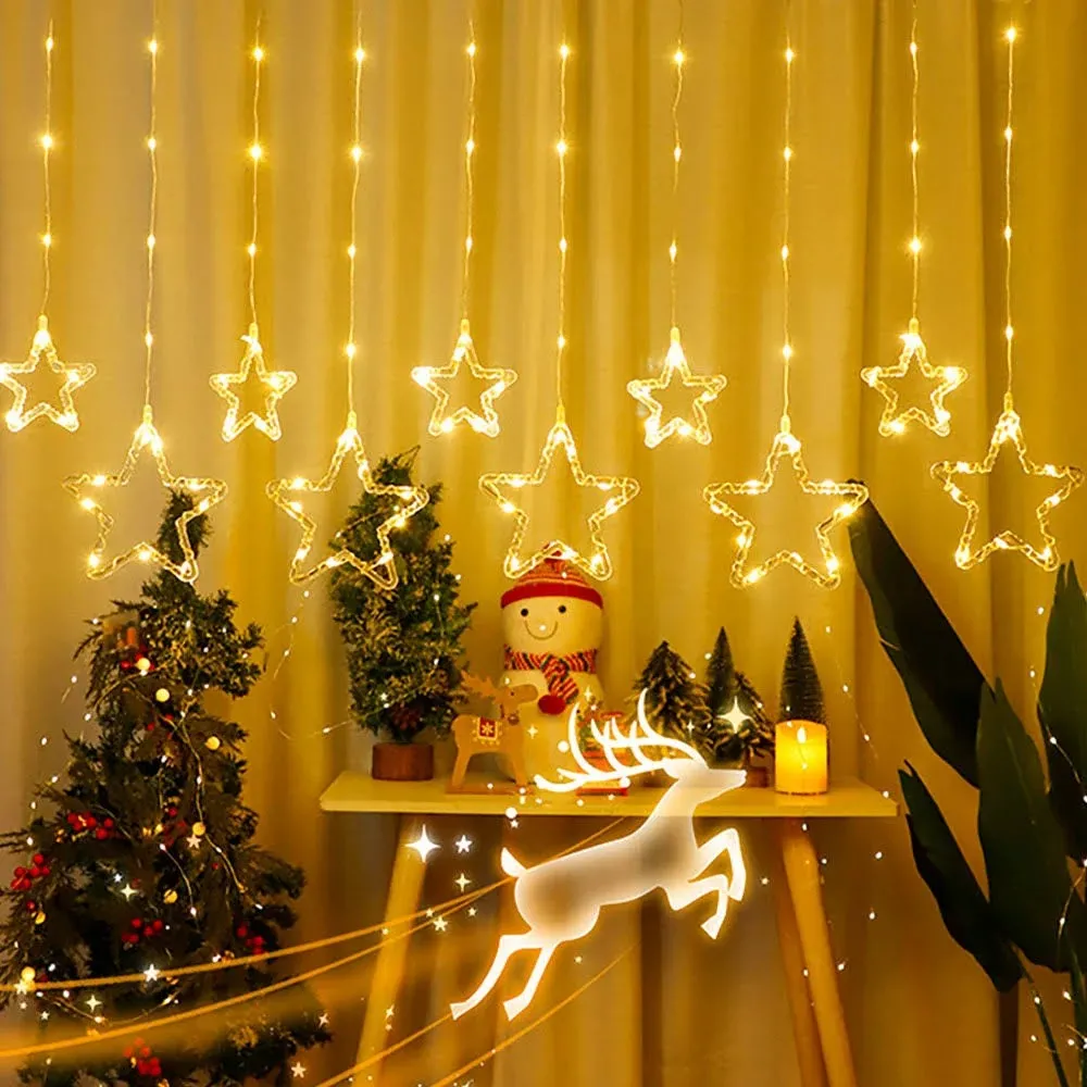 - Форма лампочек: звезды-снежинки, звезды-звезды, звезды-елочки
