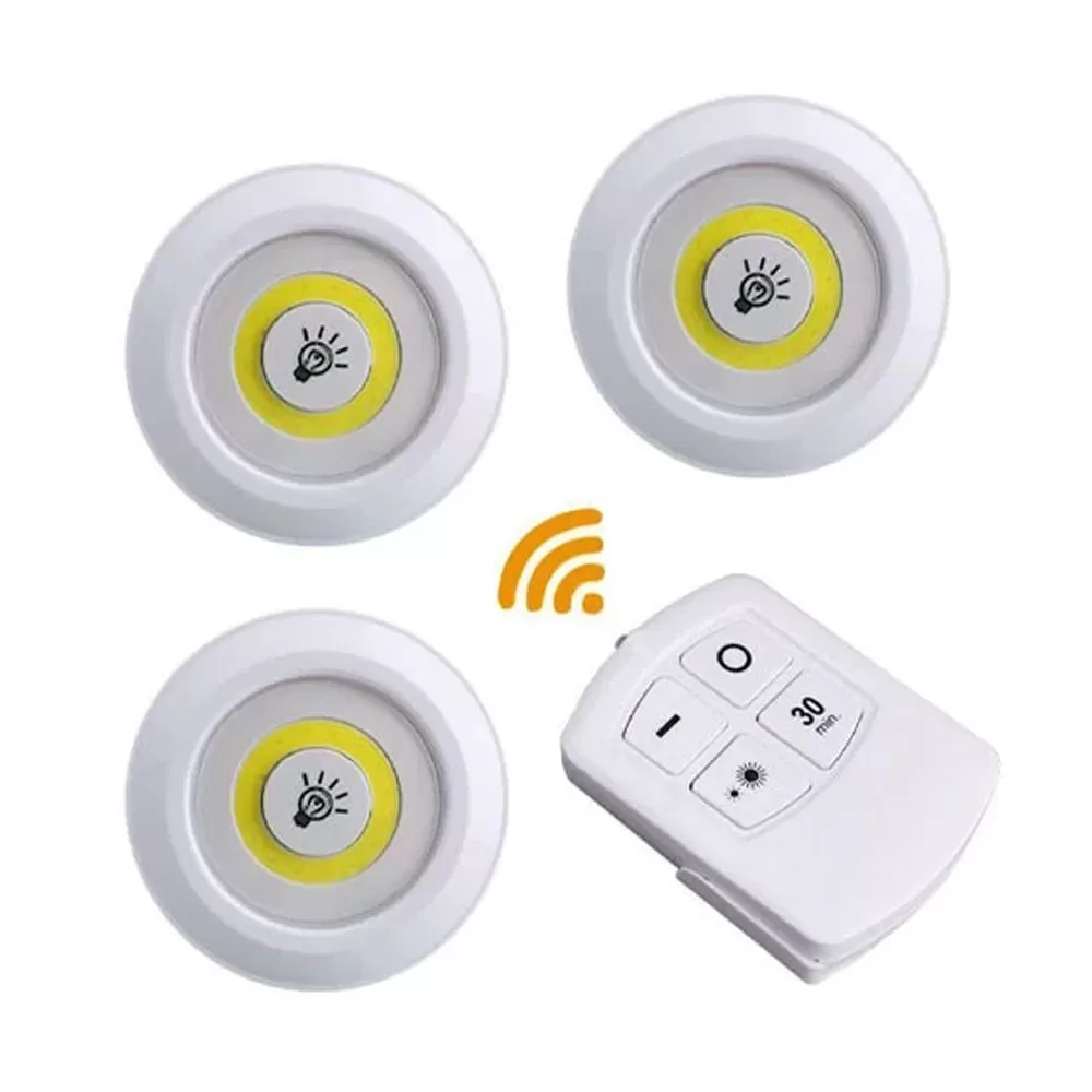 Набор из 3-х LED-светильников с пультом дистанционного управления — автономный низковольтовый осветительный прибор, которому не требуется подключение к сети.