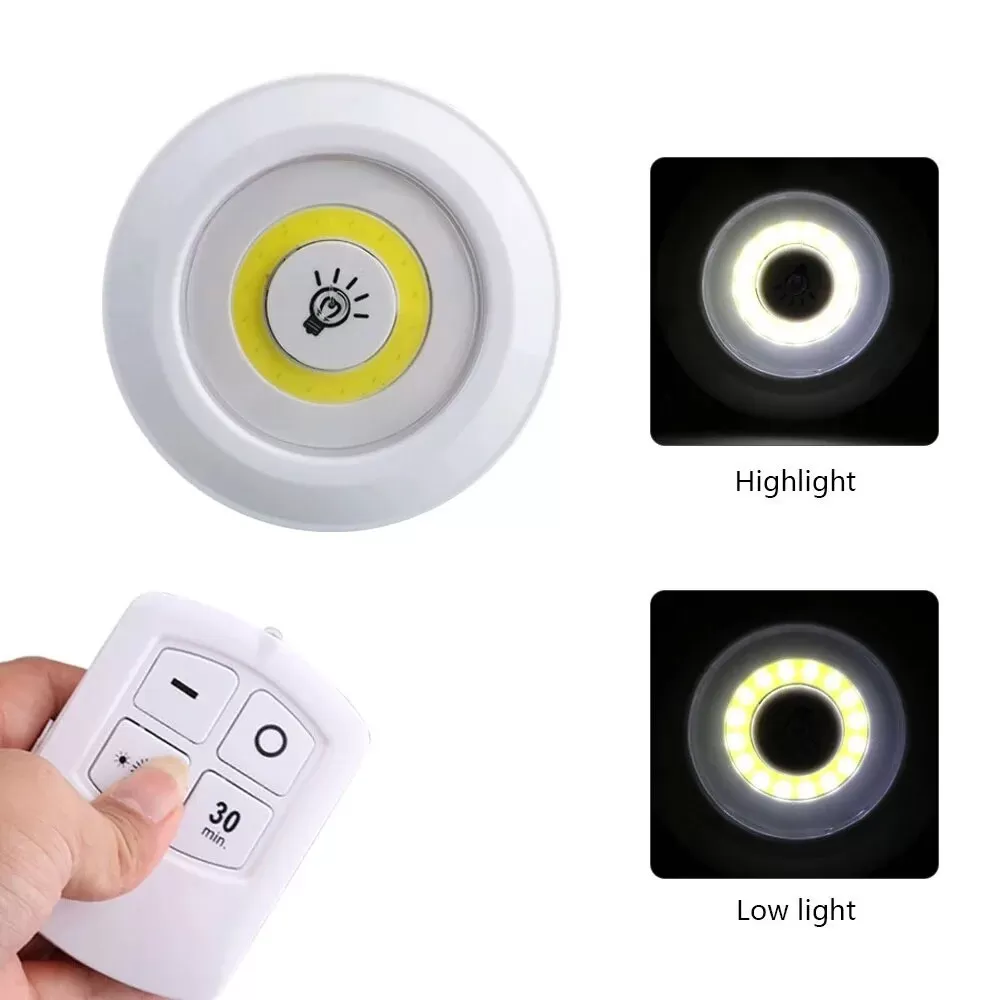 Встроенная система позволяет светильнику автоматически отключаться через 30 минут. Есть регулировка интенсивности свечения, и переключения режимов. Светильник LED light with Remote Control set идеально подходит для отключений питания и тускло освещенных областей. Светильник можно закрепить внутри шкафа, кладовки, в гараже, над рабочим столом и в других уголках дома.