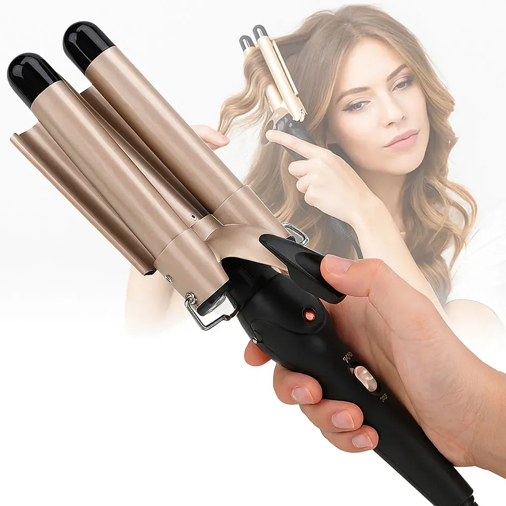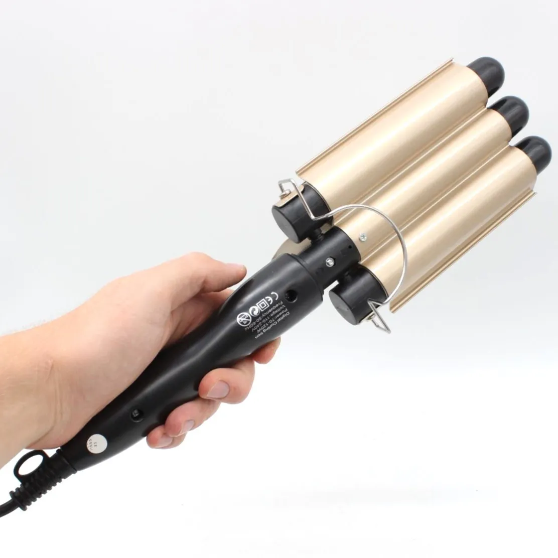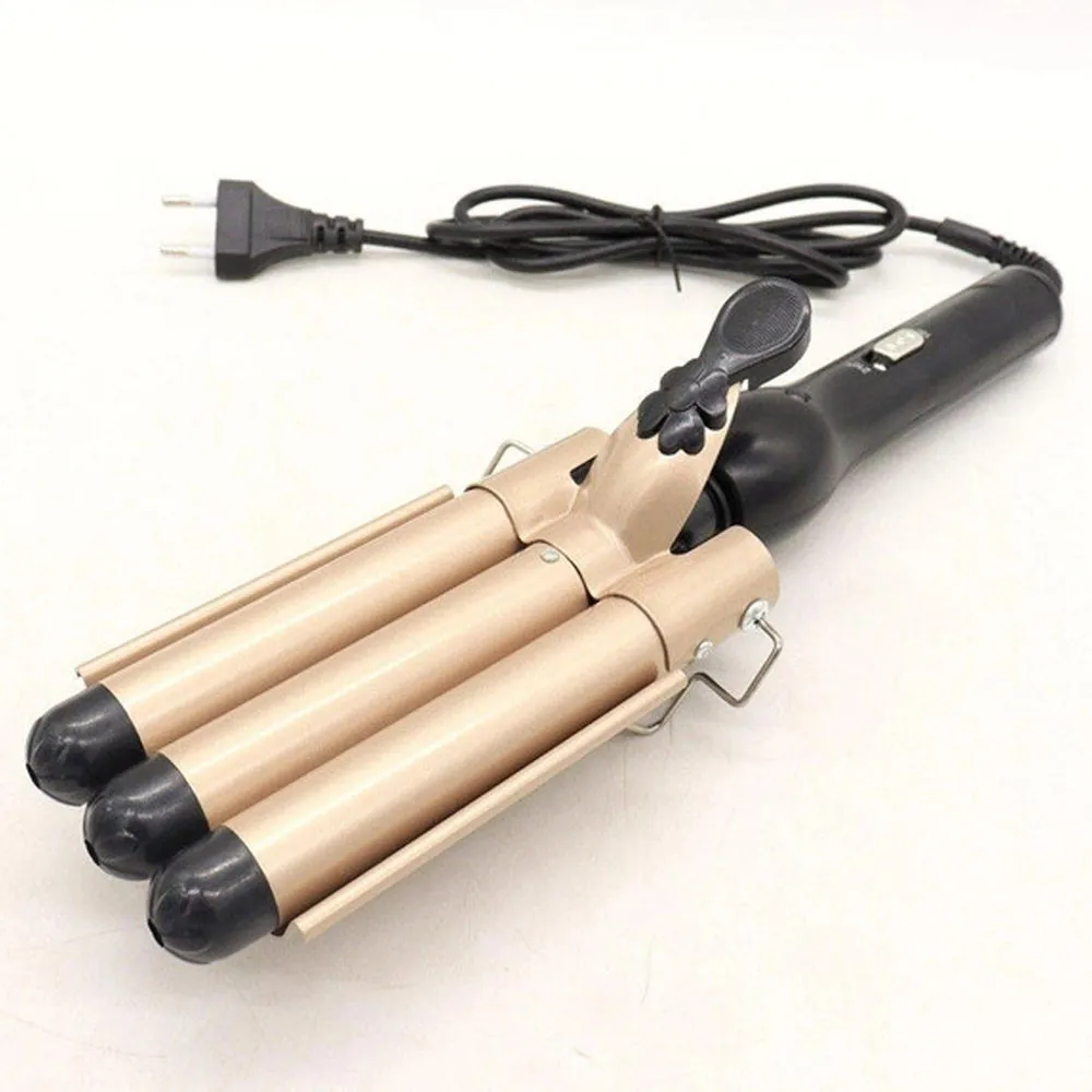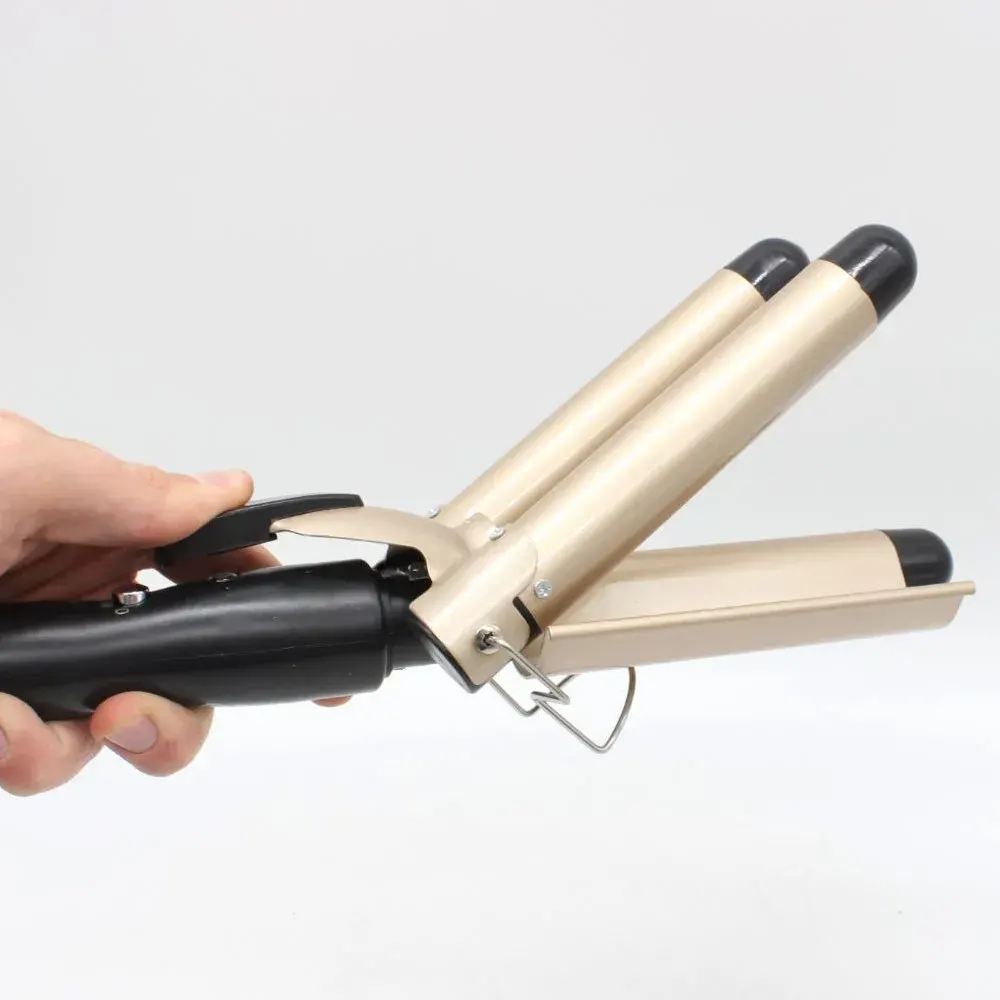 Тройная плойка с турмалиновым покрытием, 90Вт, GM 1956, Золотистый / Щипцы для укладки тройная волна / Плойка для волос