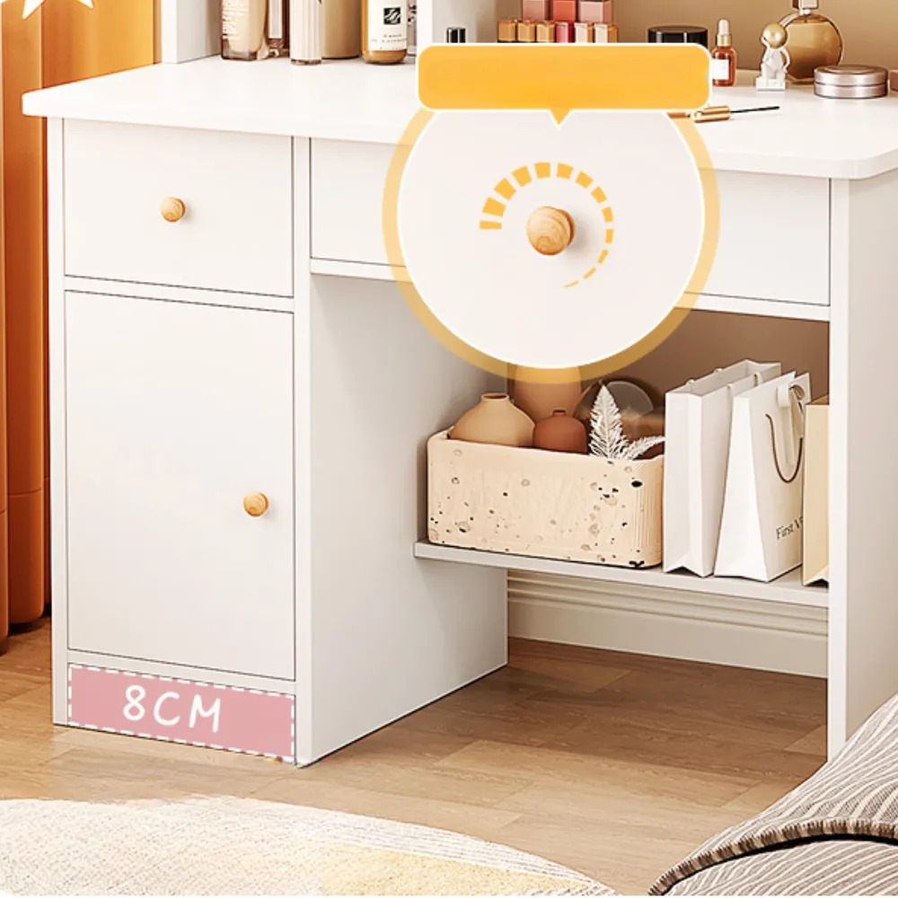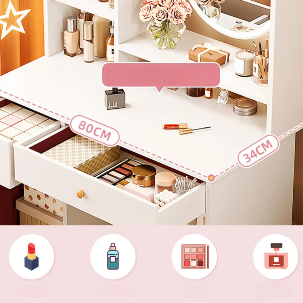 Зеркало с яркой LED подсветкой позволяет добиться идеального освещения, чтобы вы могли видеть каждую деталь. Просторные ящики и полочки предоставляют достаточно места для хранения косметики, аксессуаров и других необходимых вещей. Изготовленный из высококачественных материалов, туалетный столик “Сияние” прослужит вам долгие годы, радуя своим безупречным видом и функциональностью. Создайте свой уголок красоты и вдохновения с туалетным столиком “Сияние”!