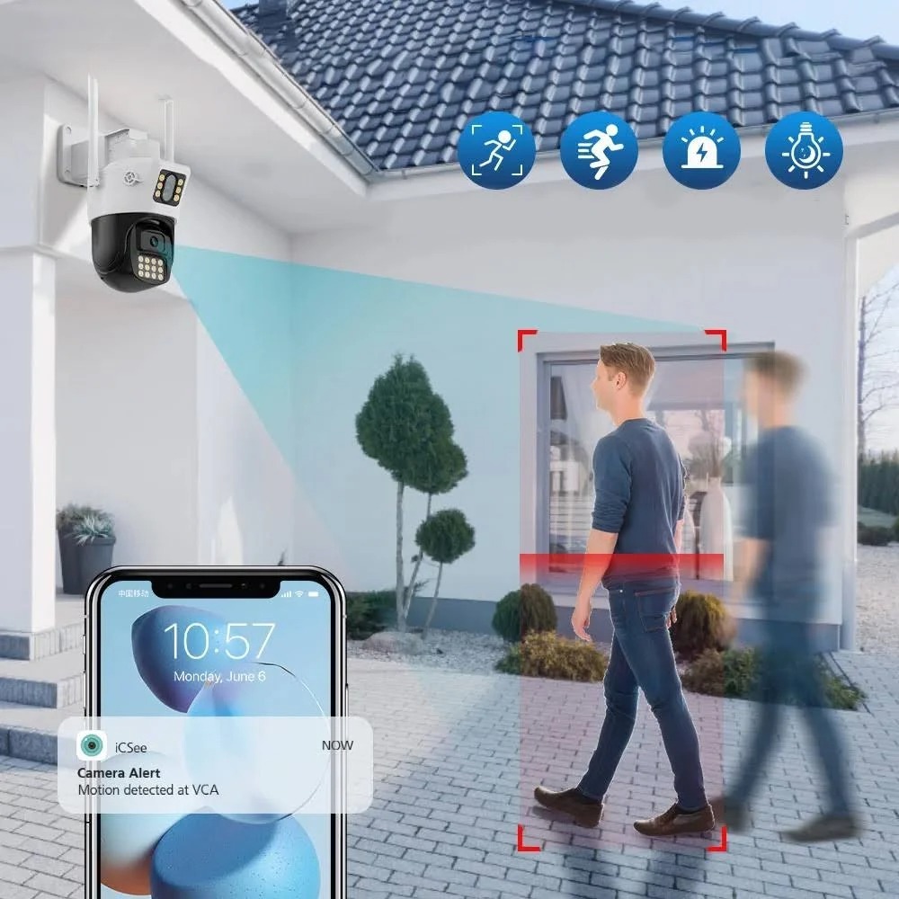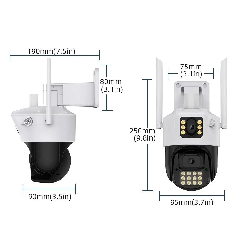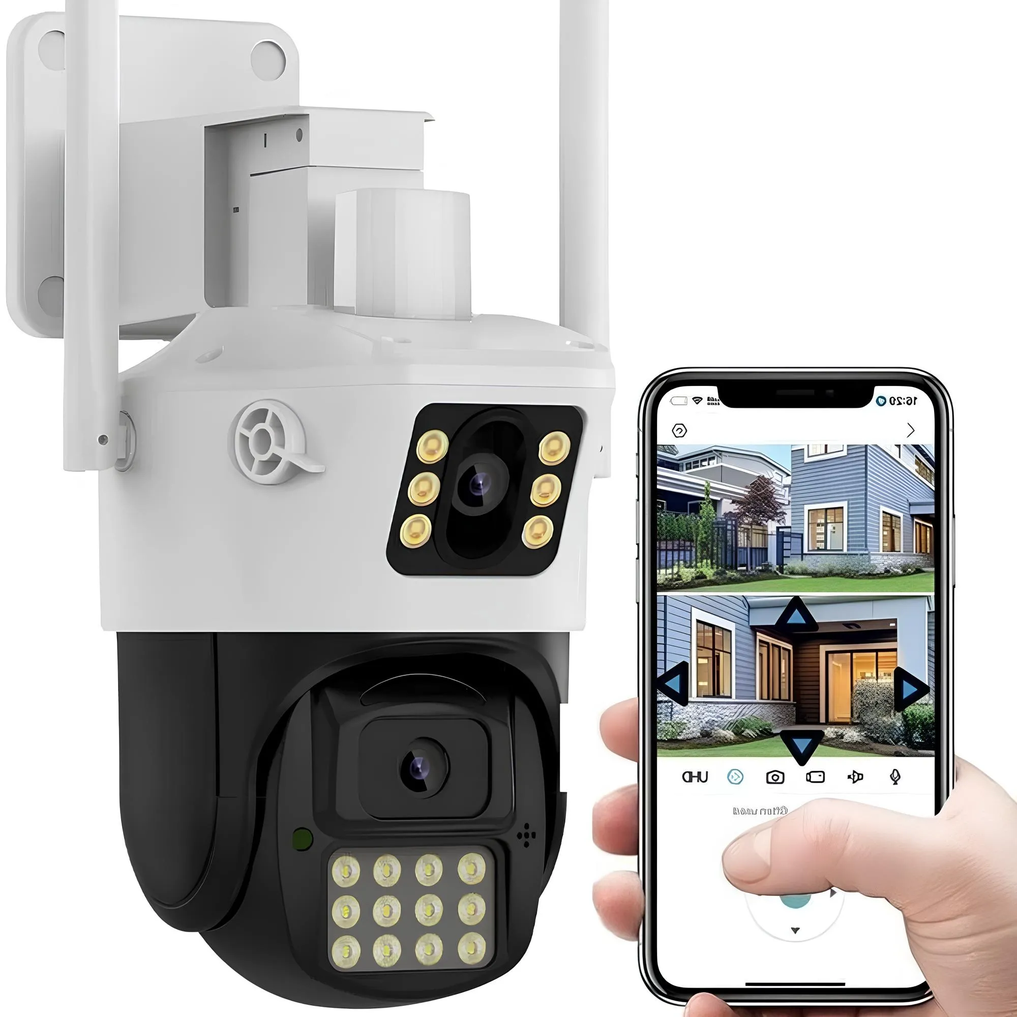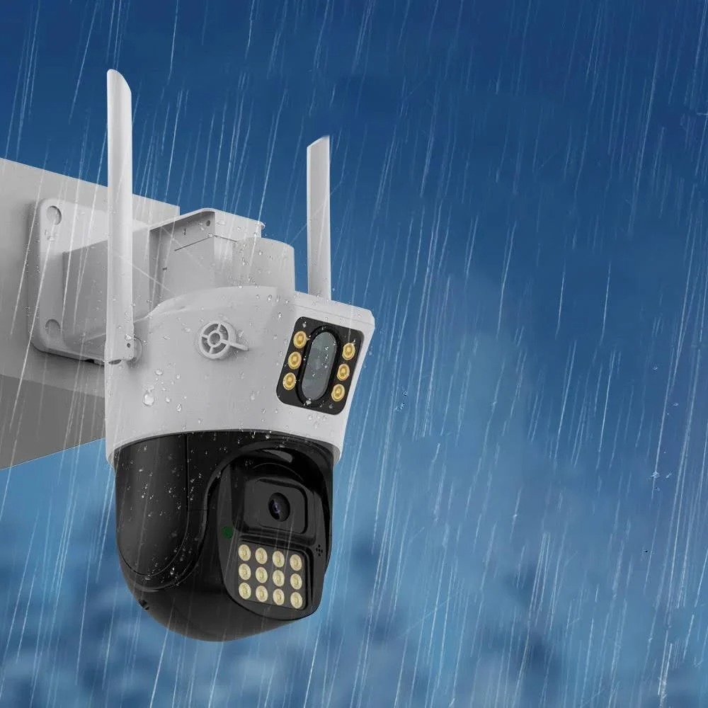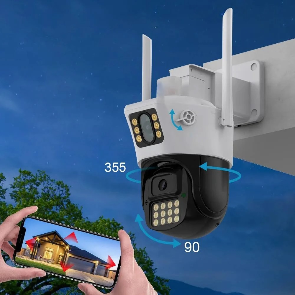 Камера видеонаблюдения уличная — это надёжное устройство для защиты вашего дома или территории. Благодаря двум объективам уличная камера видеонаблюдения записывает видео высокого качества с чётким изображением. Функция ночного видения позволяет автоматически активировать инфракрасное освещение в условиях низкой освещённости, обеспечивая хорошую видимость даже в темноте.