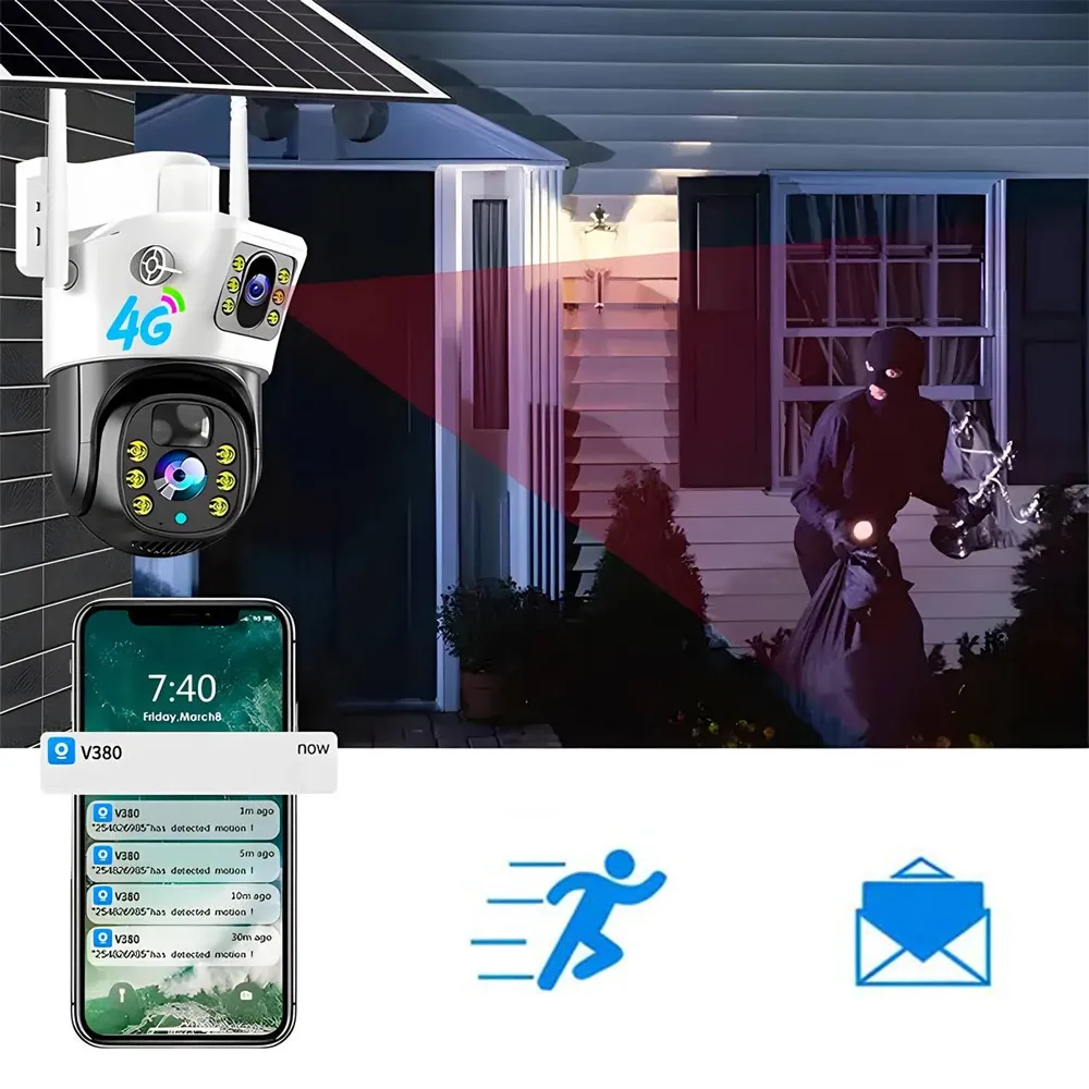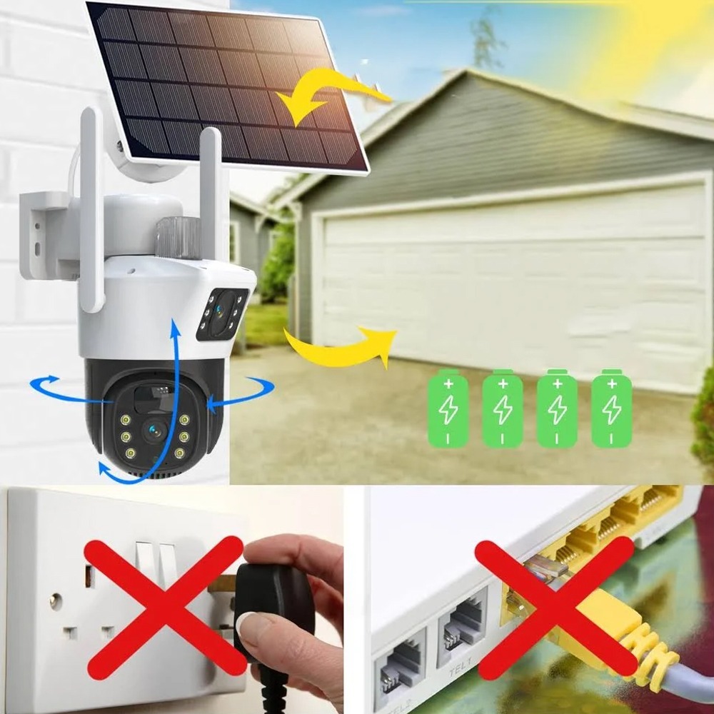 Эта Wi-Fi камера оснащена двумя объективами, что обеспечивает широкий угол обзора и высокое качество видеозаписи. Поддержка технологии 4G позволяет передавать видео в реальном времени даже в удалённых местах без доступа к проводному интернету. Камера также поддерживает Wi-Fi-соединение, что упрощает её настройку и управление через мобильное приложение на смартфоне или планшете.
