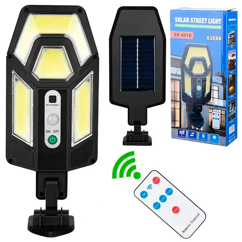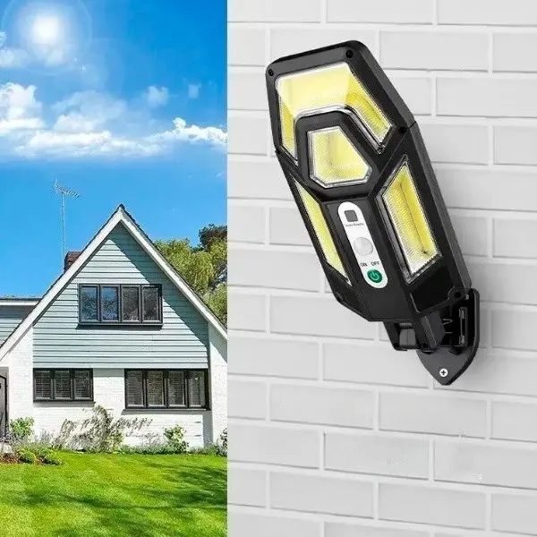 Светильник на солнечной батарее HS-801B – это мощный уличный фонарь, предлагающий три режима освещения. Этот универсальный светильник идеально подходит для установки на наружных стенах, у входной двери, в садах, дворах или гаражах. Одной из ключевых особенностей является интеллектуальная система управления, которая автоматически активирует освещение в темноте и заряжает аккумулятор днем, обеспечивая эффективность использования энергии.