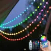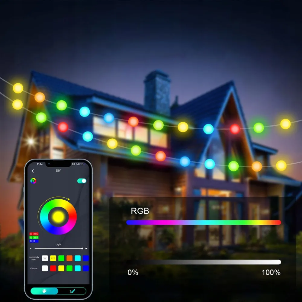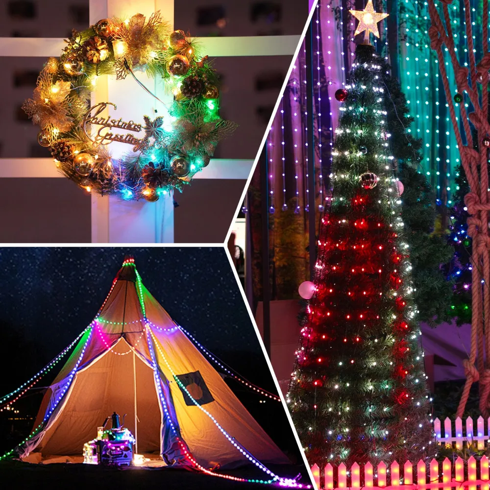 Одной из главных особенностей этой гирлянды является возможность управления через смартфон и пульт дистанционного управления. С помощью мобильного приложения вы сможете легко выбирать различные цветовые режимы, яркость и эффекты мерцания, что позволяет создать атмосферу под ваше настроение. Пульт ДУ упрощает использование, делая управление интуитивным и быстрым даже на расстоянии.