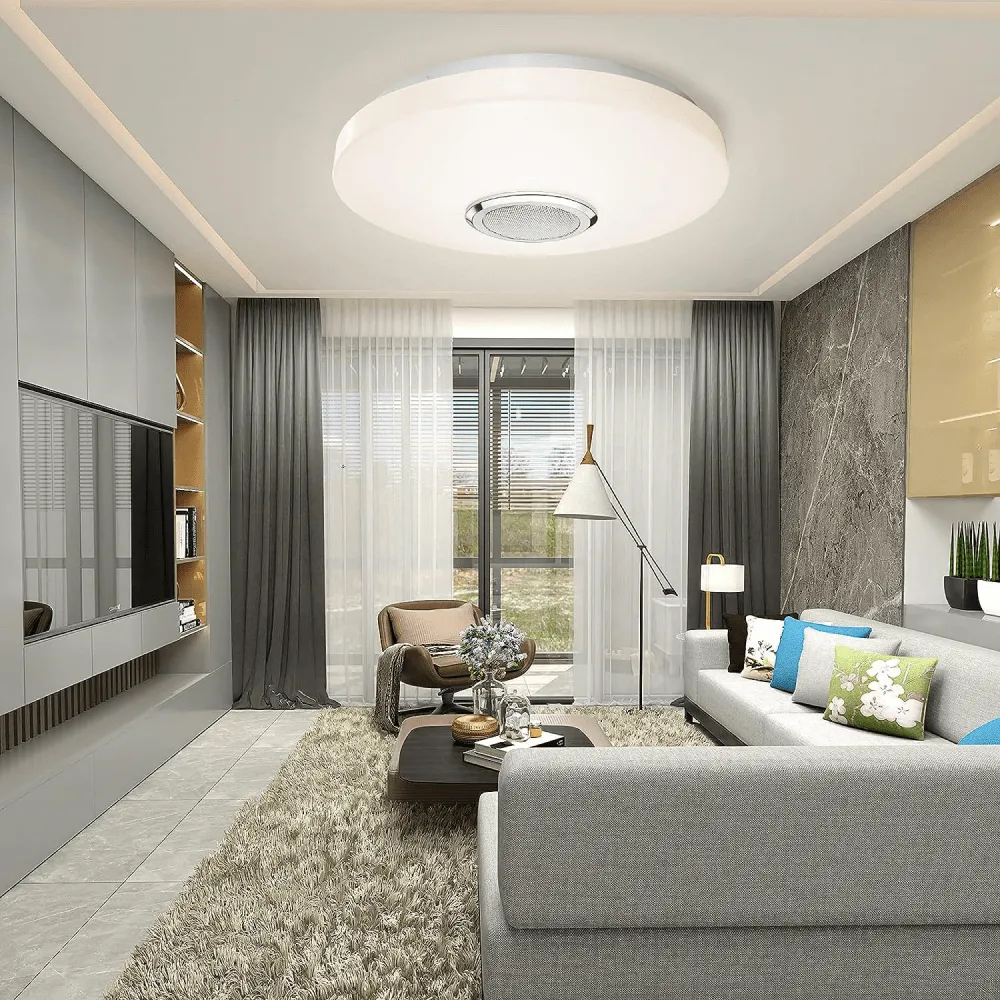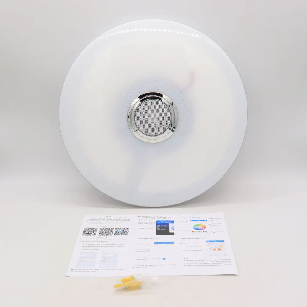 Люстра также предлагает выбор из трёх режимов яркости и цветовой температуры — холодной, нейтральной или тёплой. Особенность модели — встроенная Bluetooth-колонка с качественным звучанием, позволяющая наслаждаться музыкой, фильмами или проводить уютные вечера с семьёй, включая колыбельные для детей или сопровождение мультфильмов.