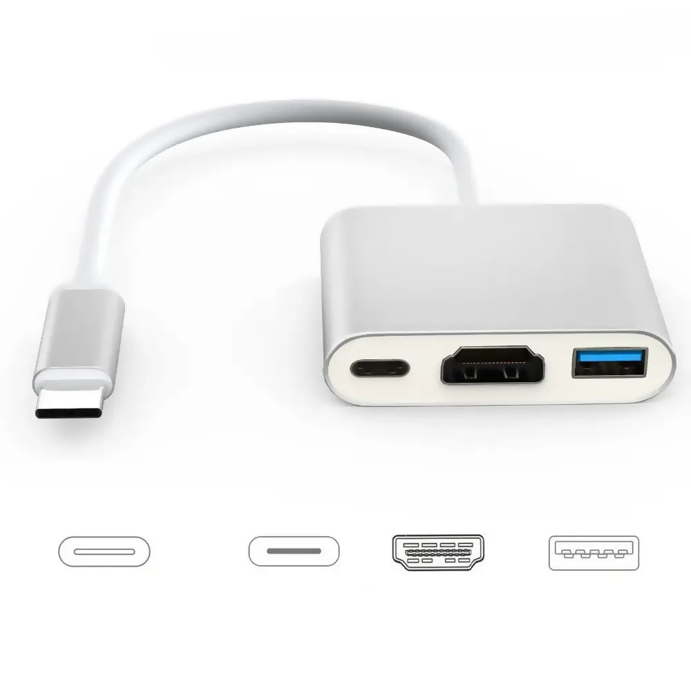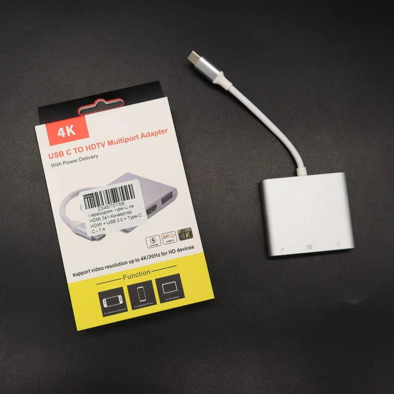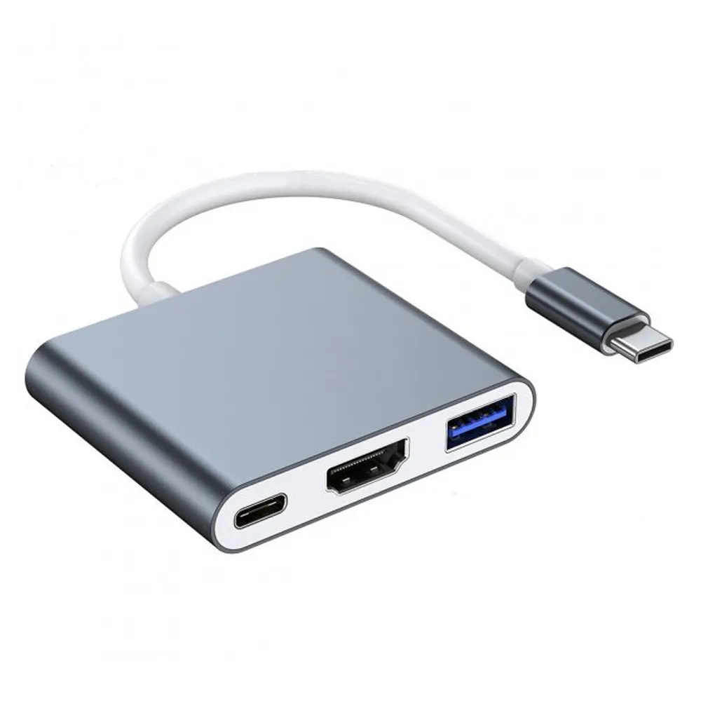 - Переходник Type-C на HDMI 3в1 (HDMI + USB 3.0 + Type-C);