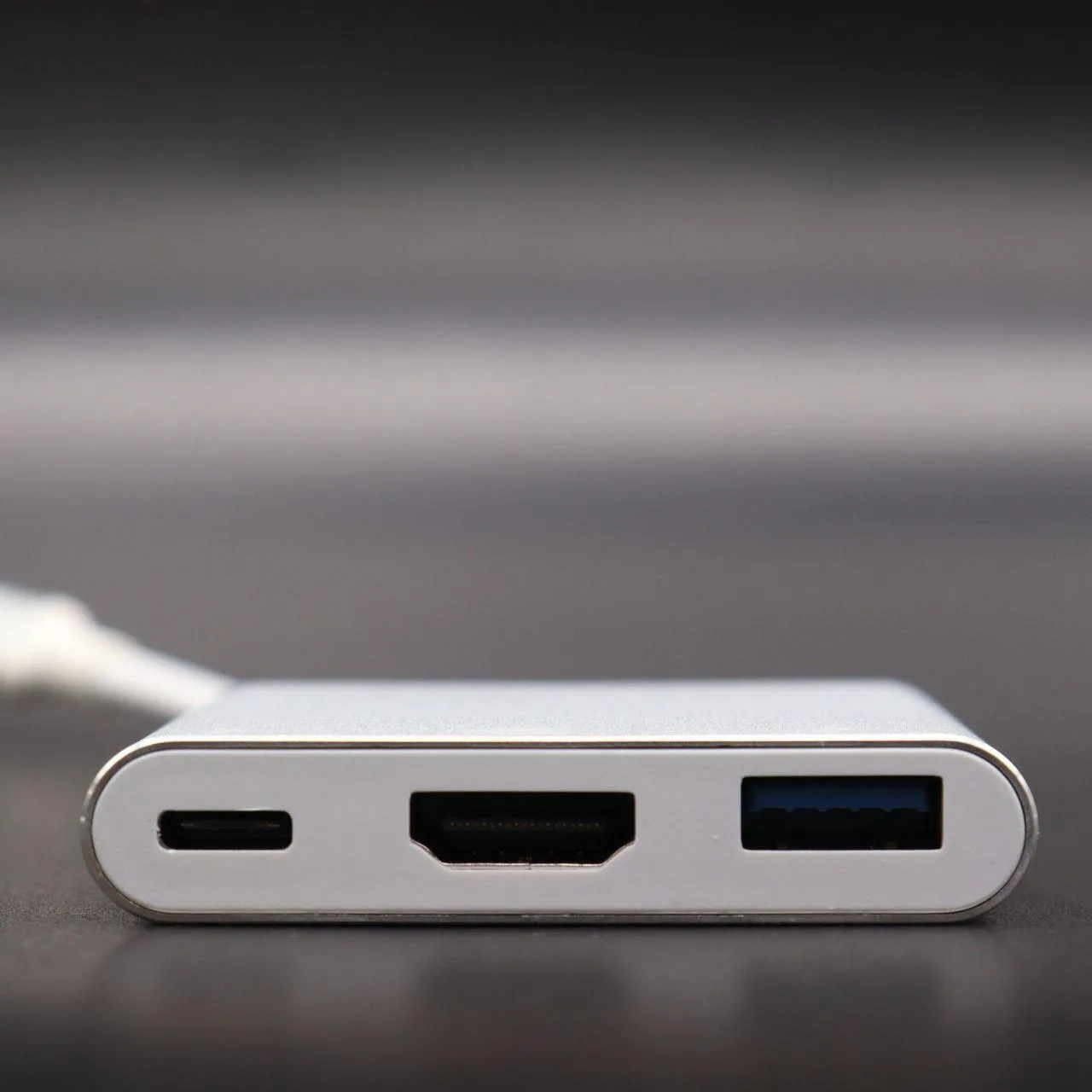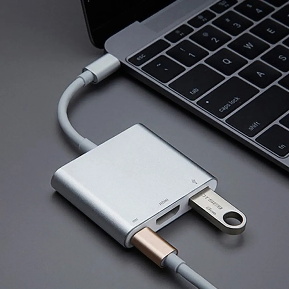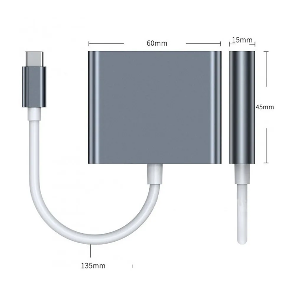 - Переходник Type-C на HDMI 3в1 (HDMI + USB 3.0 + Type-C);