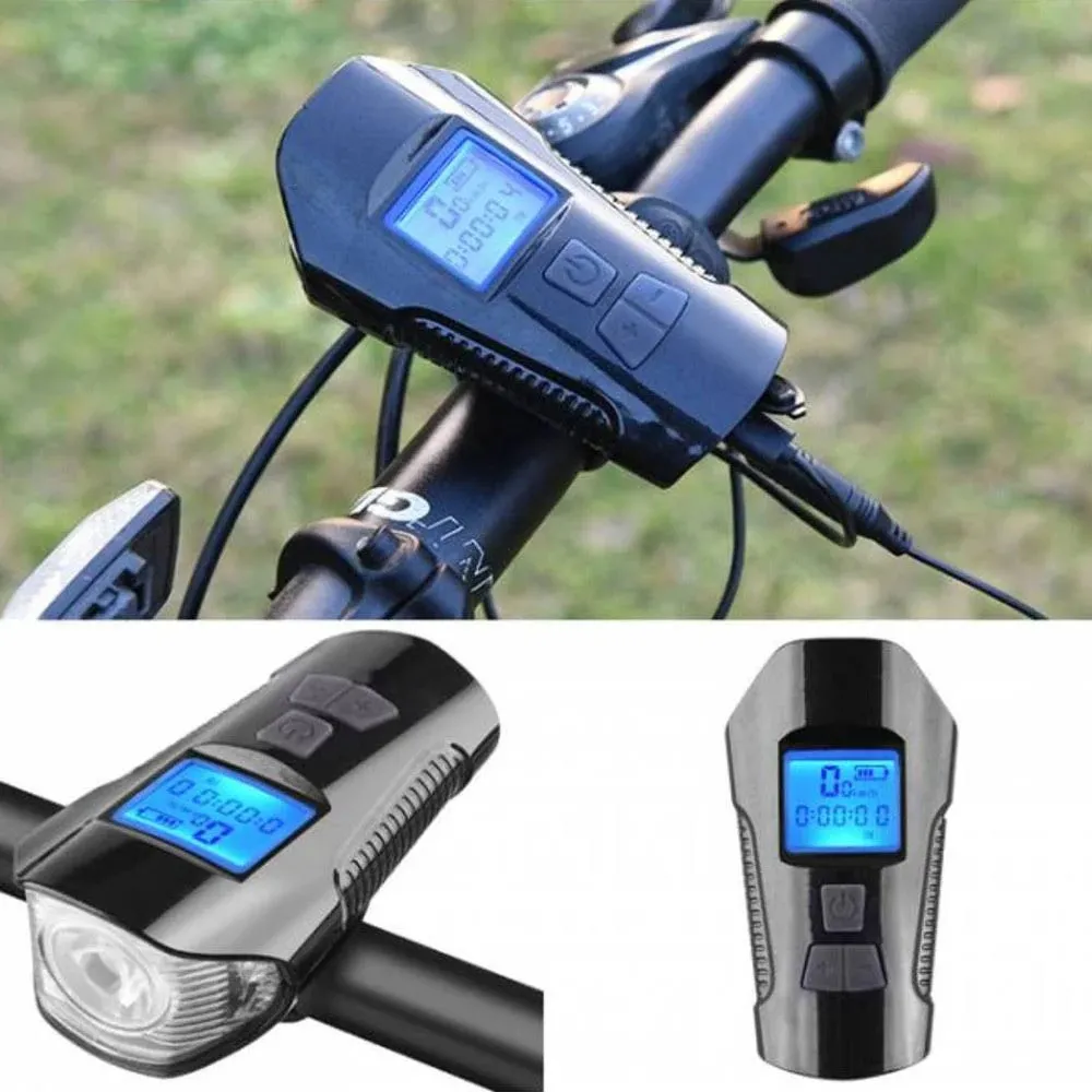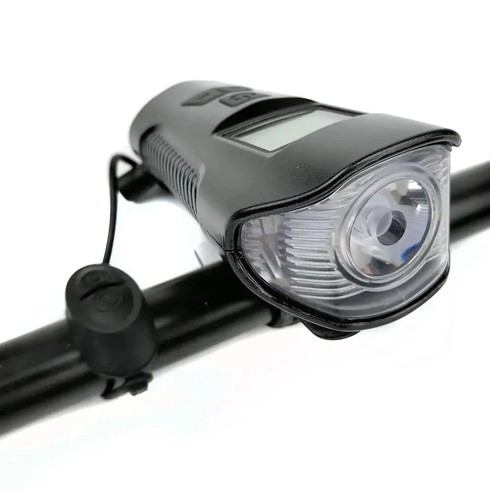 Велофара с компьютером и сигналом, от USB, XA-585-T6+2LED / Фонарик для велосипеда / Фара на велосипед