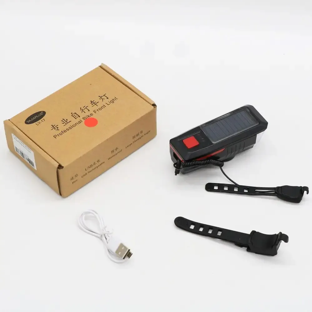 Аккумуляторная велофара LY-17-XPE – это универсальный и надежный аксессуар для велосипедистов, сочетающий яркое освещение, водонепроницаемость и удобную подзарядку. Оснащенная солнечной панелью, она позволяет заряжать аккумулятор непосредственно во время езды при дневном свете, сокращая потребность в частом подключении к сети.
