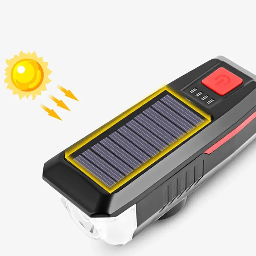 Водостойкий корпус защищает велофар от дождя и брызг, обеспечивая надежную работу в любых погодных условиях. Громкий звонок позволяет легко извещать пешеходов и других велосипедистов о своем присутствии. Фара поддерживает зарядку как через солнечную панель, так и через USB, что делает ее удобной и универсальной для любых ситуаций.