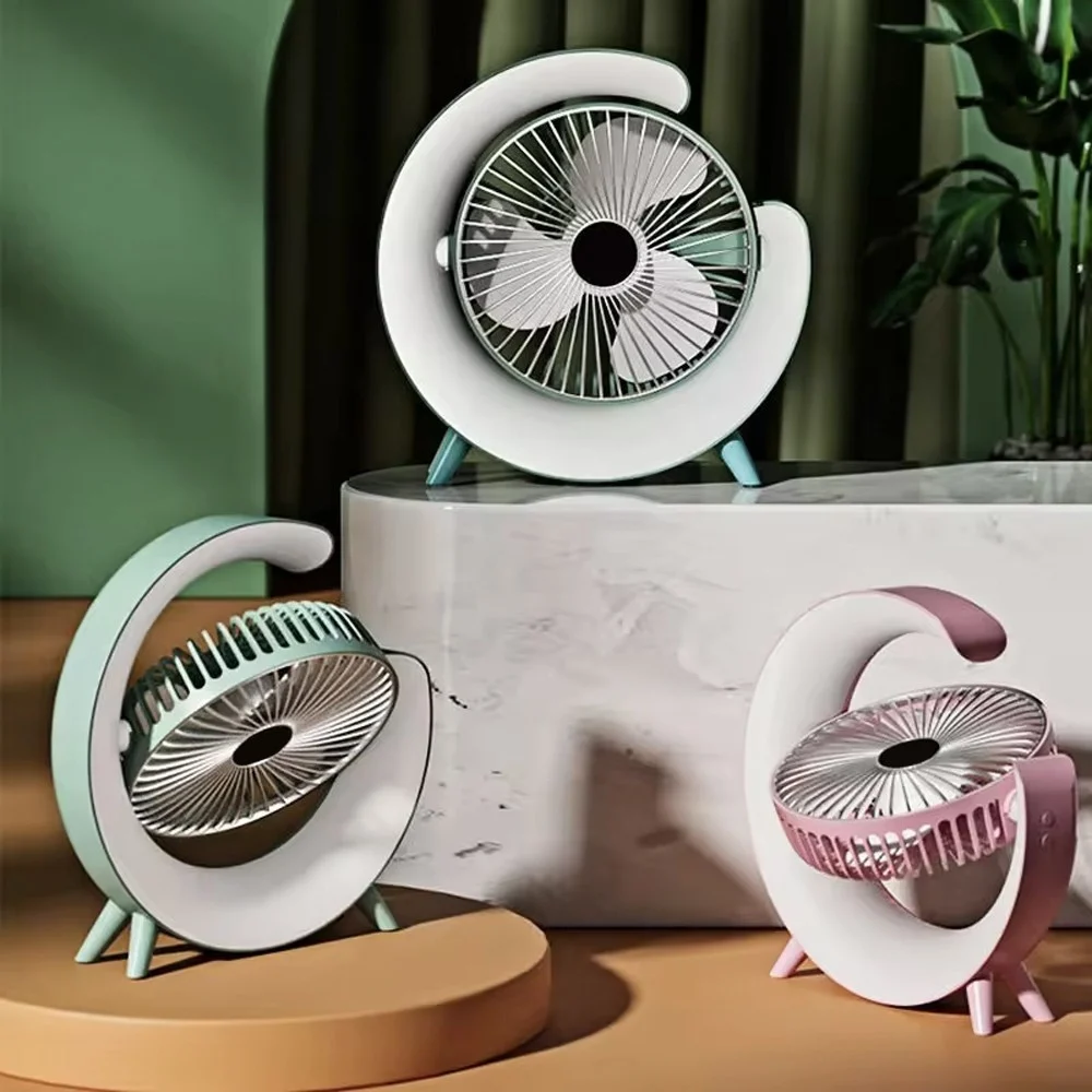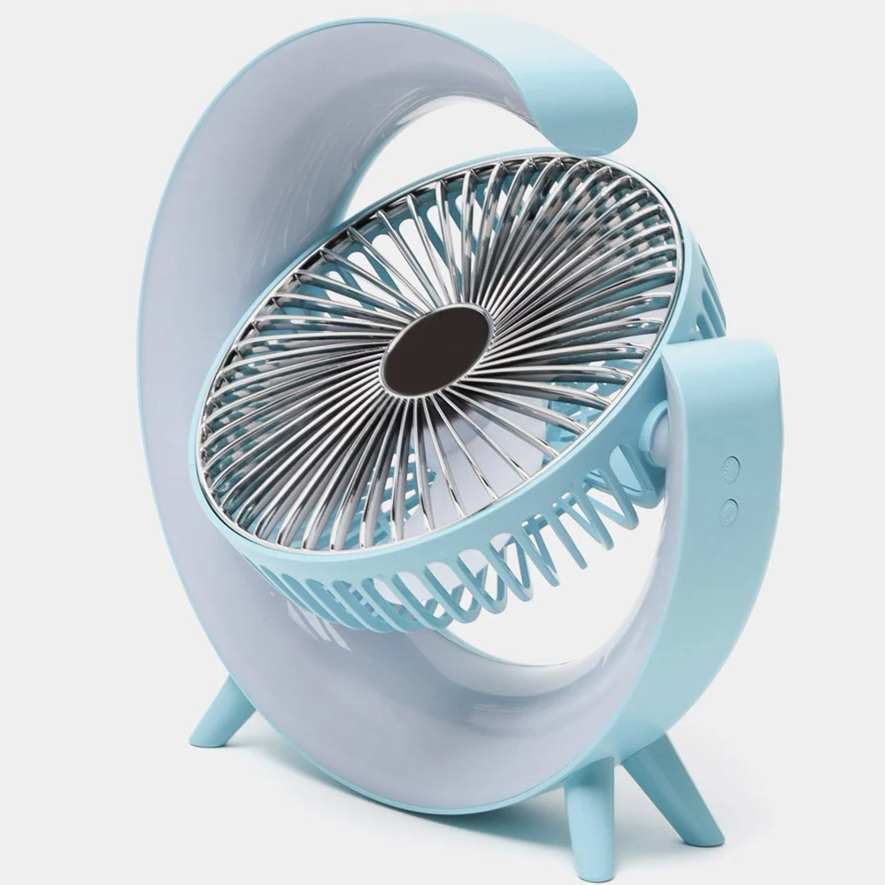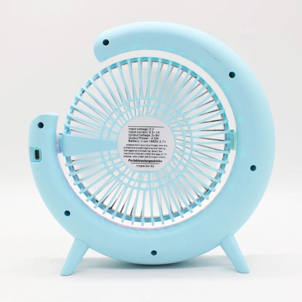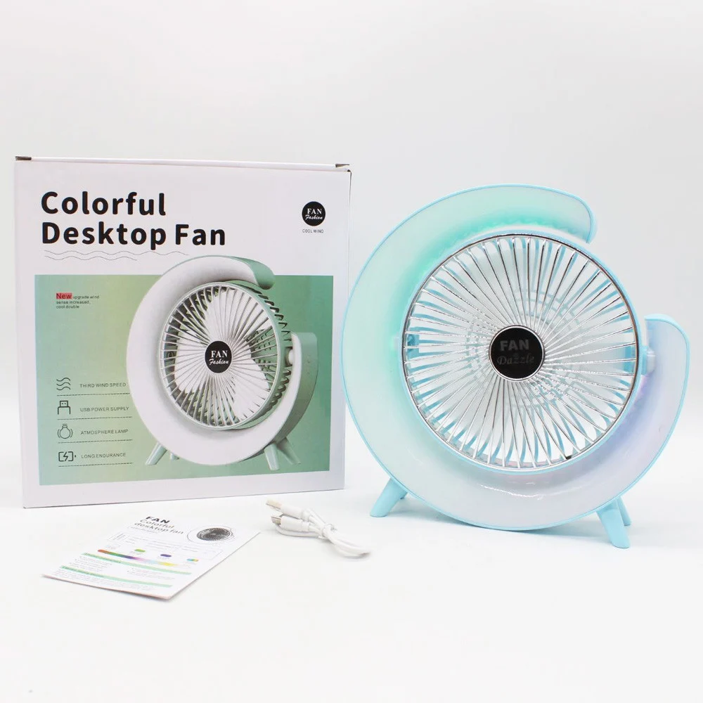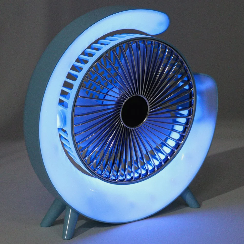 Вентилятор настольный с подсветкой, USB, Голубой / Мини вентилятор с RGB подсветкой / Портативный вентилятор