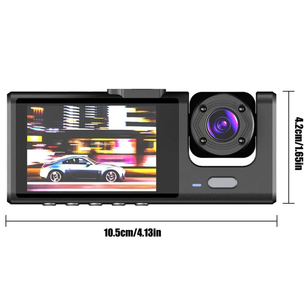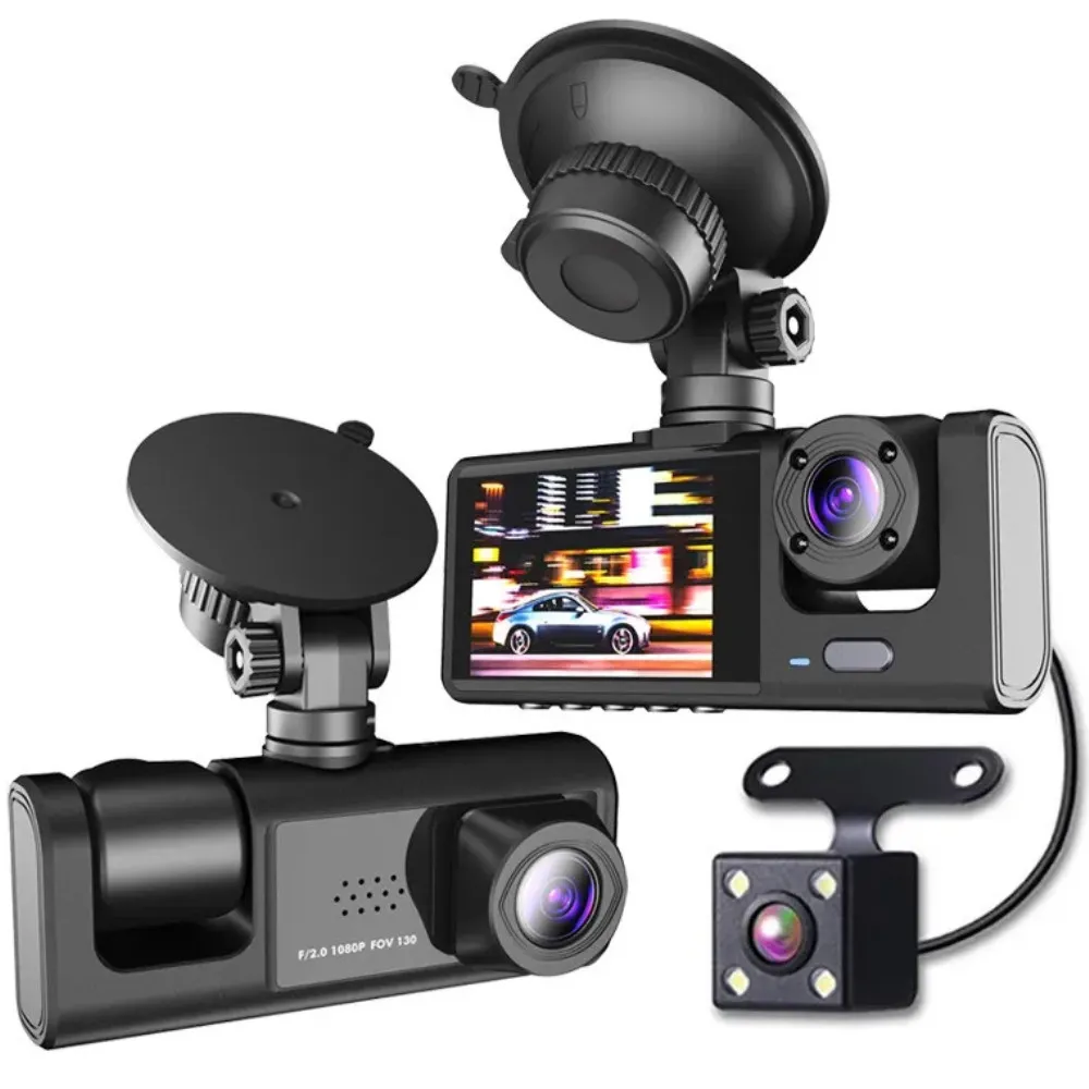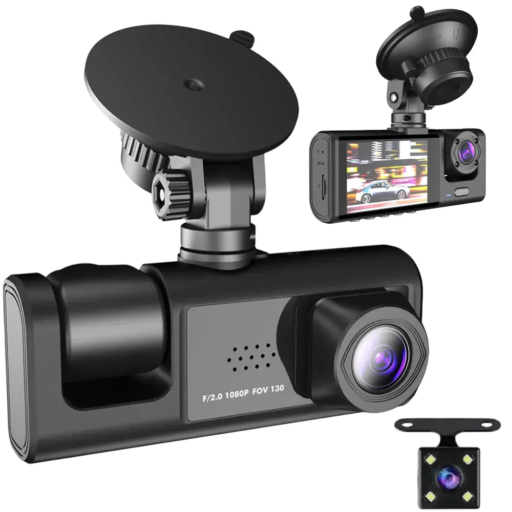 Видеорегистратор с тремя камерами — отличное решение для обеспечения безопасности во время поездок. Передняя камера фиксирует события перед автомобилем, задняя помогает при парковке и мониторинге ситуации сзади, а внутренняя камера записывает происходящее в салоне. Это устройство предоставляет вам уверенность и защиту в любых дорожных условиях.