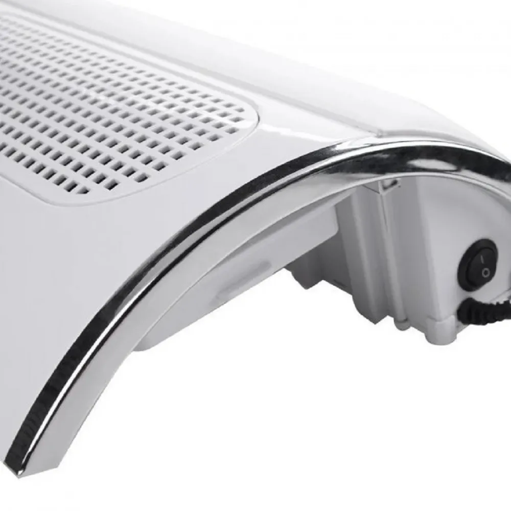 Вытяжка для маникюрного стола Simei 858-5 с таймером, рассчитанная на две руки и оснащенная тремя мощными вентиляторами, идеально подходит как для начинающих, так и для опытных мастеров. Она эффективно удаляет пыль, образующуюся при наращивании и спиливании ногтей, обеспечивая чистоту и гигиену рабочего места.