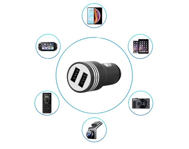 Это зарядное устройство оснащено стандартными USB-разъемами для подключения кабелей к вашим устройствам. Благодаря своим компактным размерам, оно легко поместится в бардачке автомобиля. Оставайтесь всегда на связи, имея под рукой лишь USB-кабель.